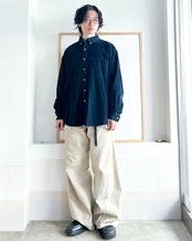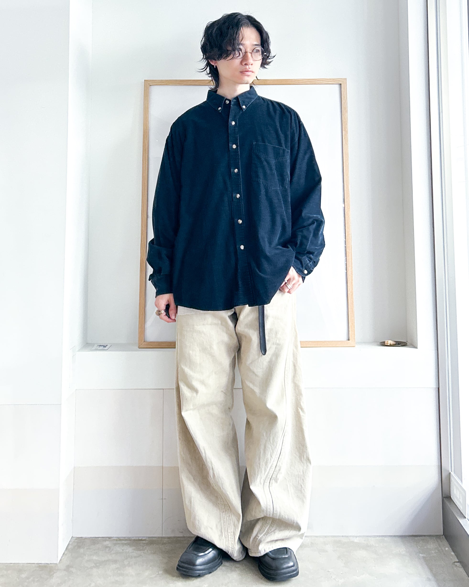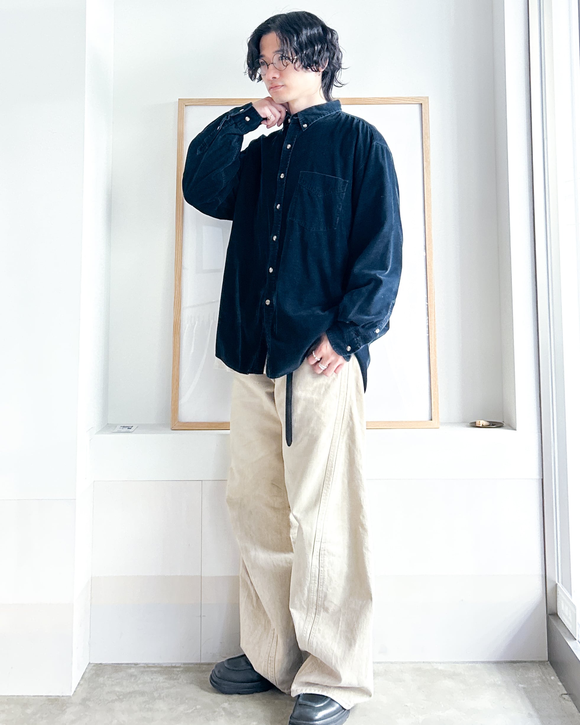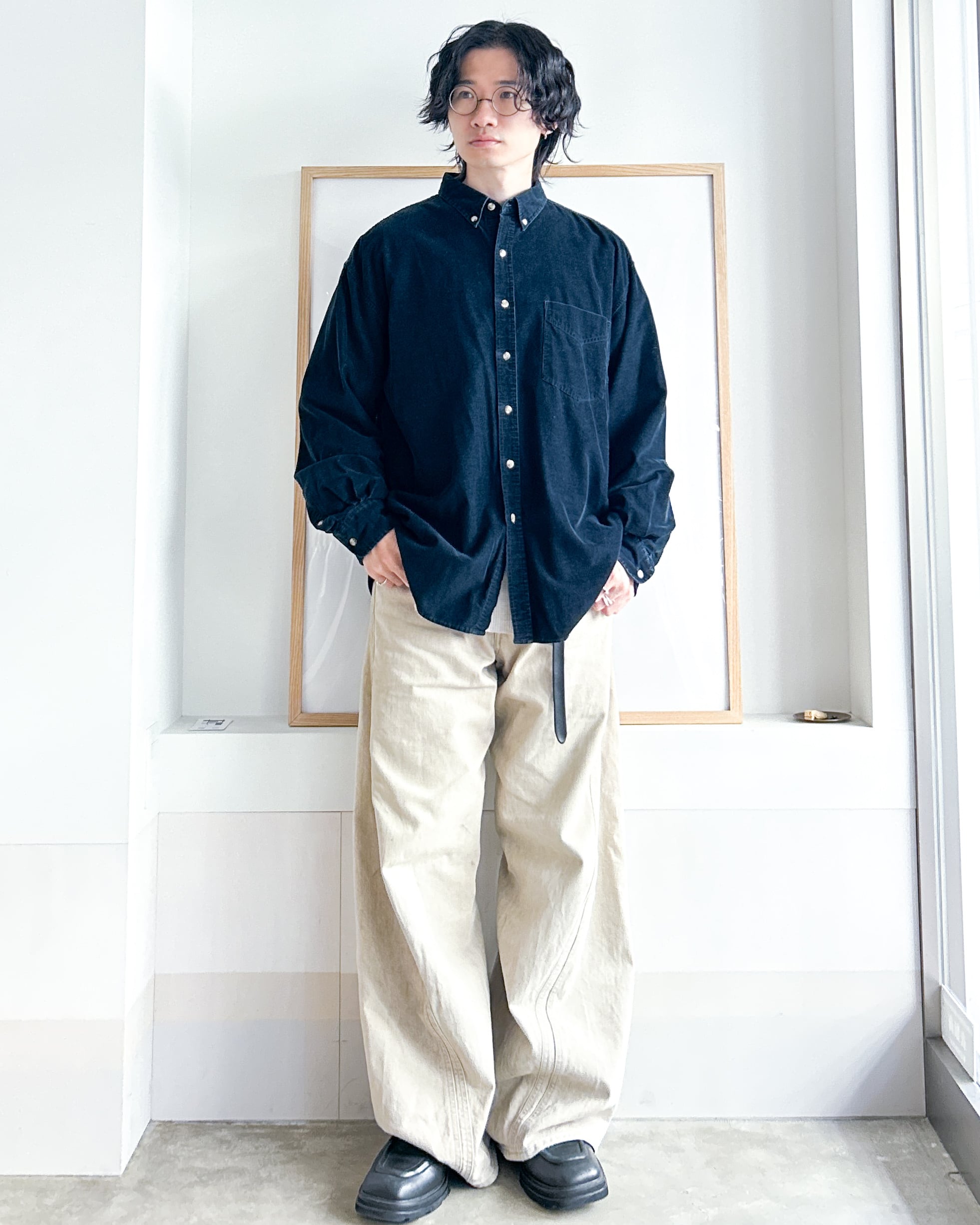 細畝コーデュロイの表情とダークネイビーの色合いが相まって深みのある質感に。