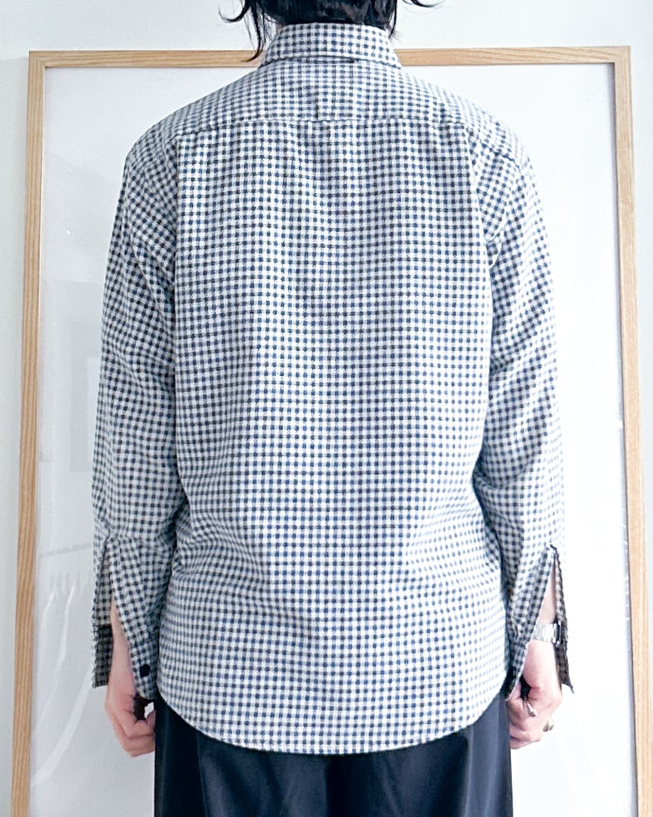 大きめのレギュラーカラーがクラシカルな印象を加えつつ、コンパクトなシルエットで今っぽく着こなせます。
