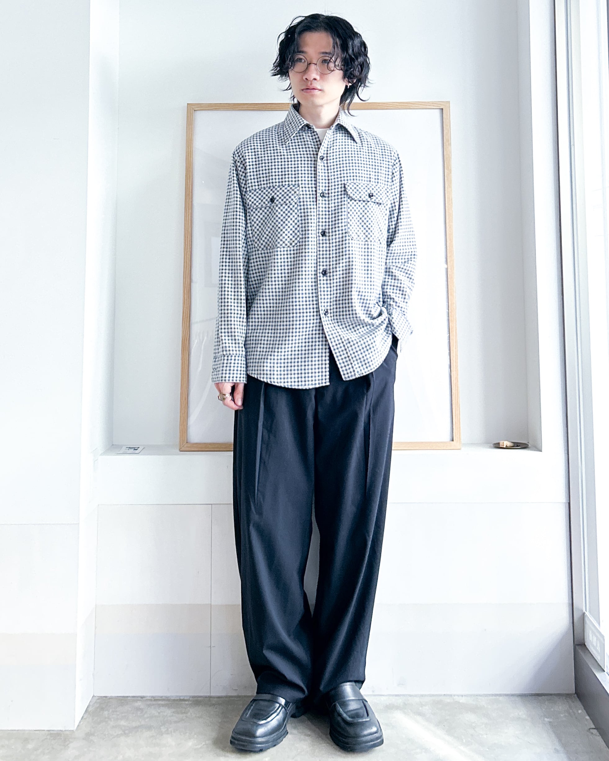 やや起毛感がありつつ、さらっとした柔らかい生地感はロングシーズン着用可能です。