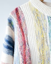 ウールとアルパカが混紡されていて、滑らかな肌触りとふっくらとした質感で子供っぽく見えません。