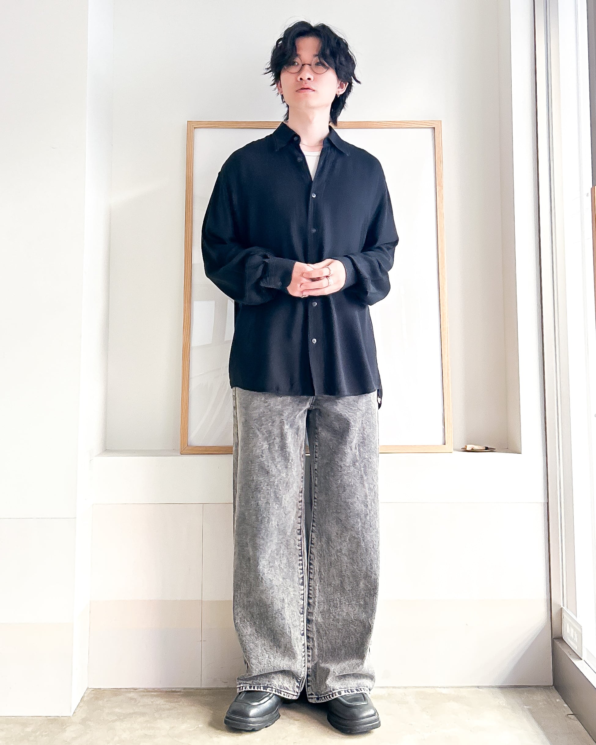 レギュラーカラードレープシャツ