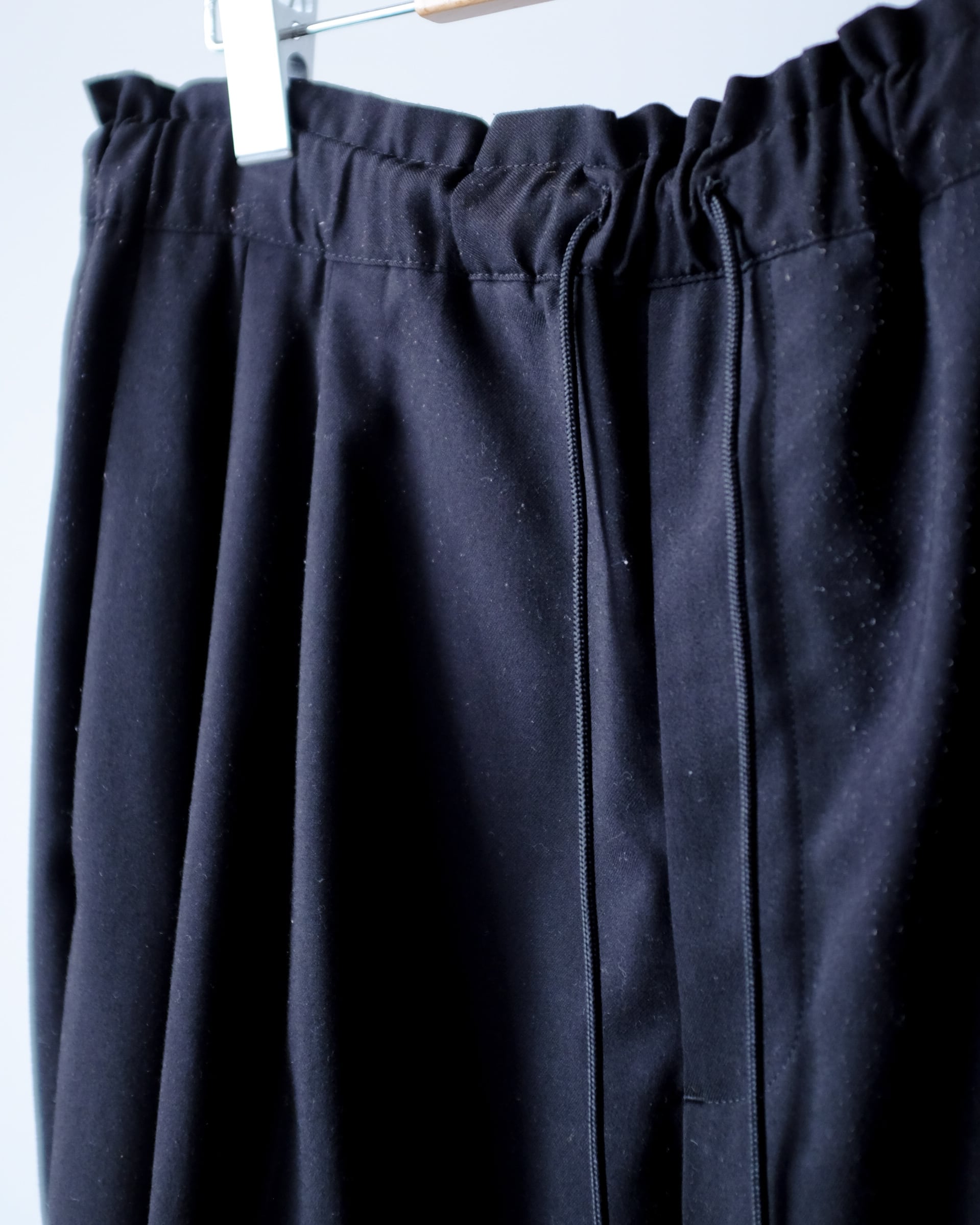 大きめのウエストをドローコーデで絞ることにより、自然にギャザーが寄ってドレープ感が出ます。