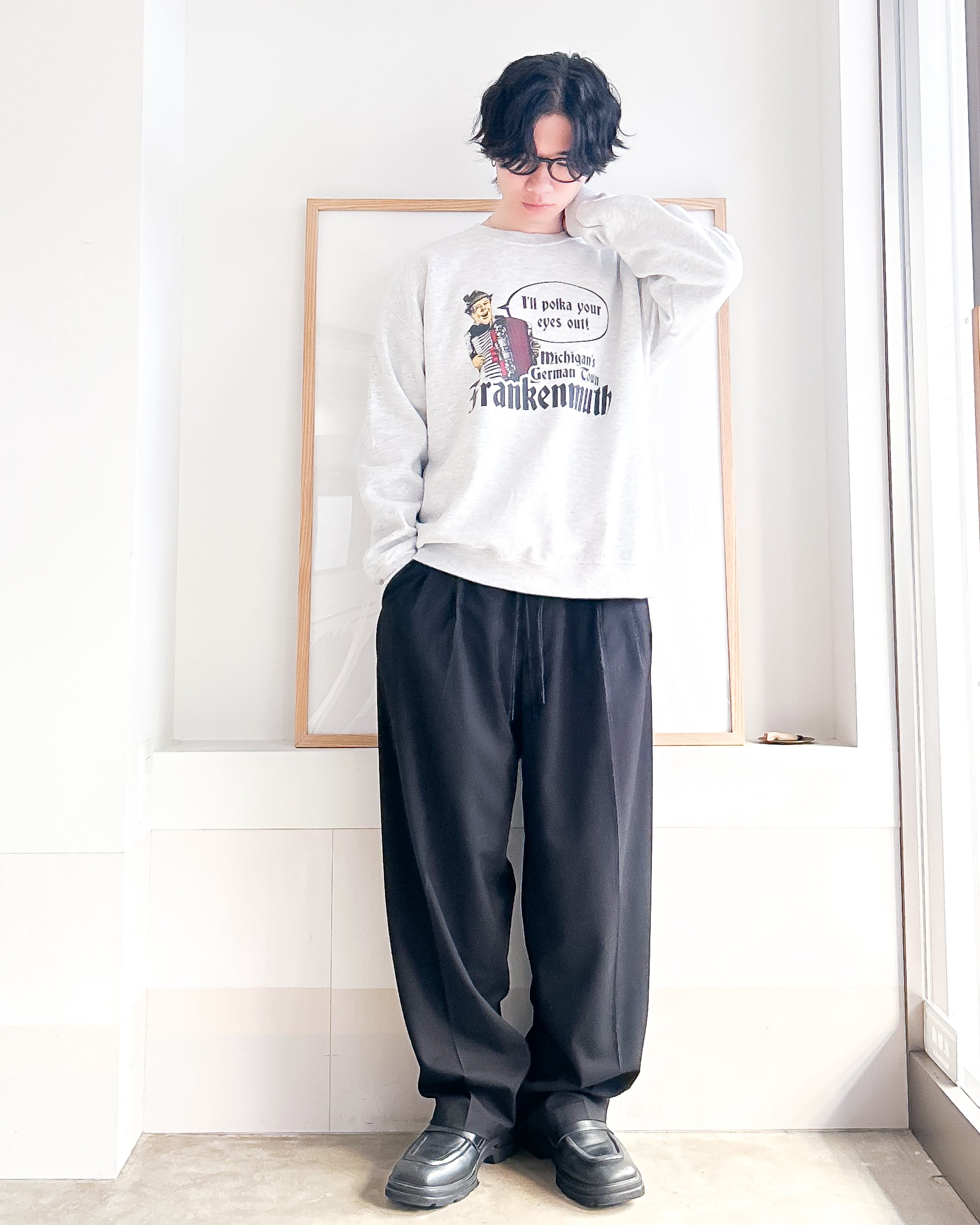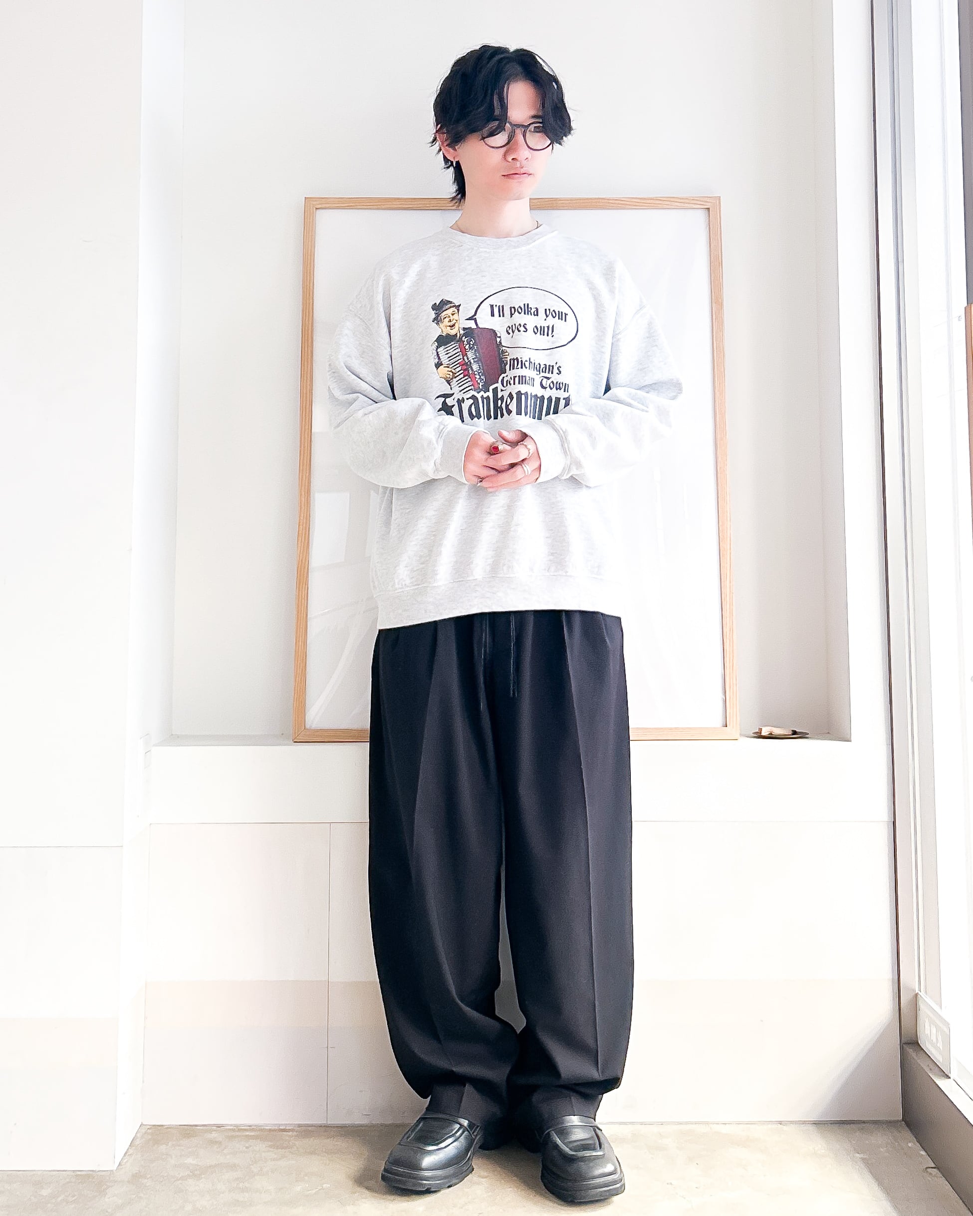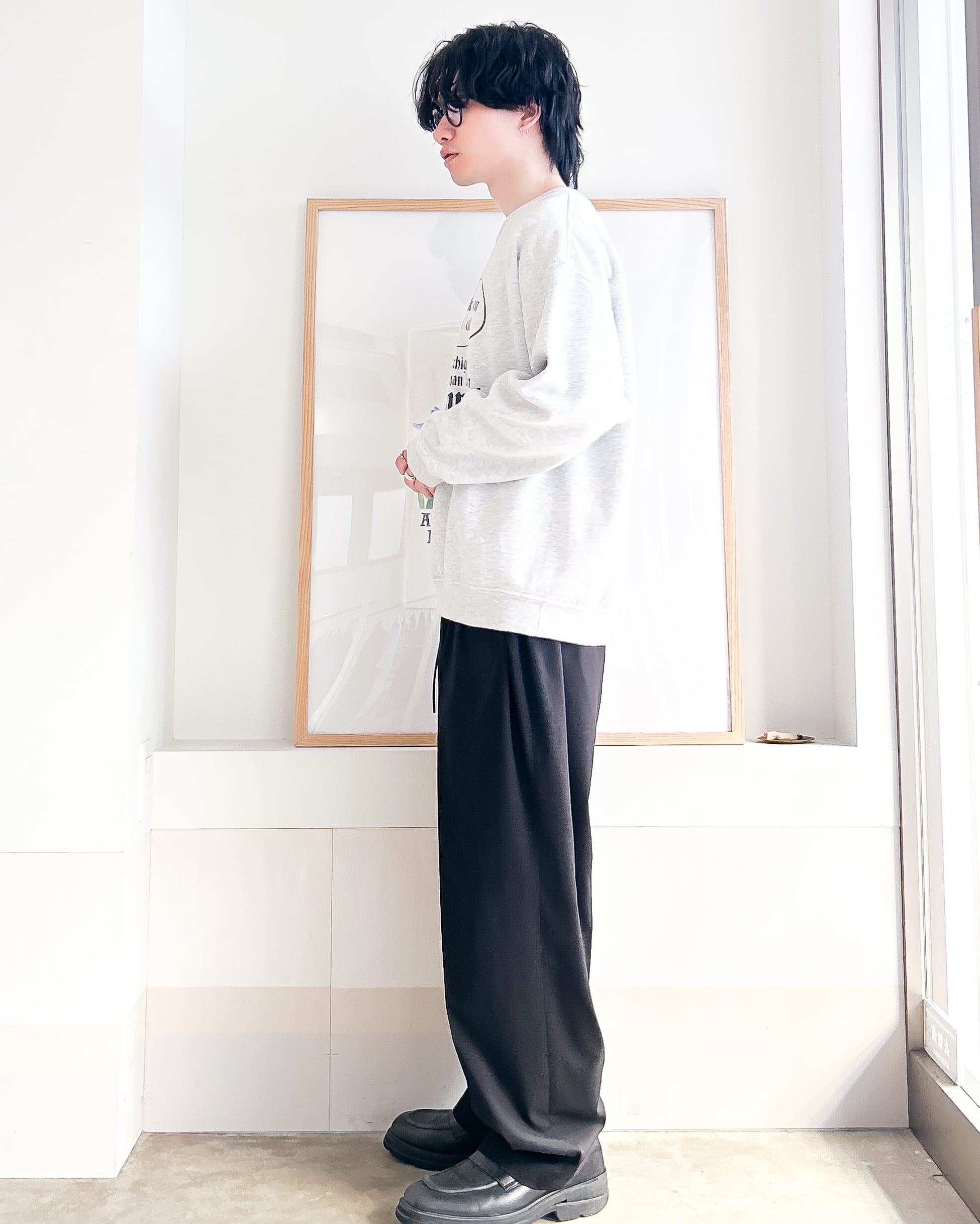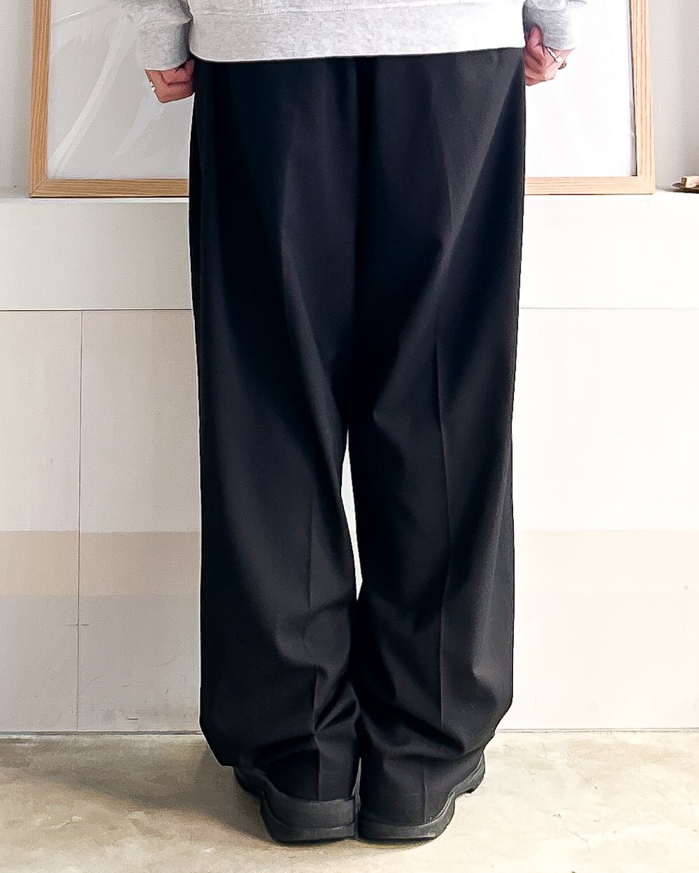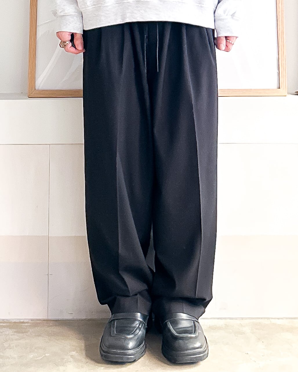 たっぷりした布量によるドレープ感が特徴のイージースラックス。