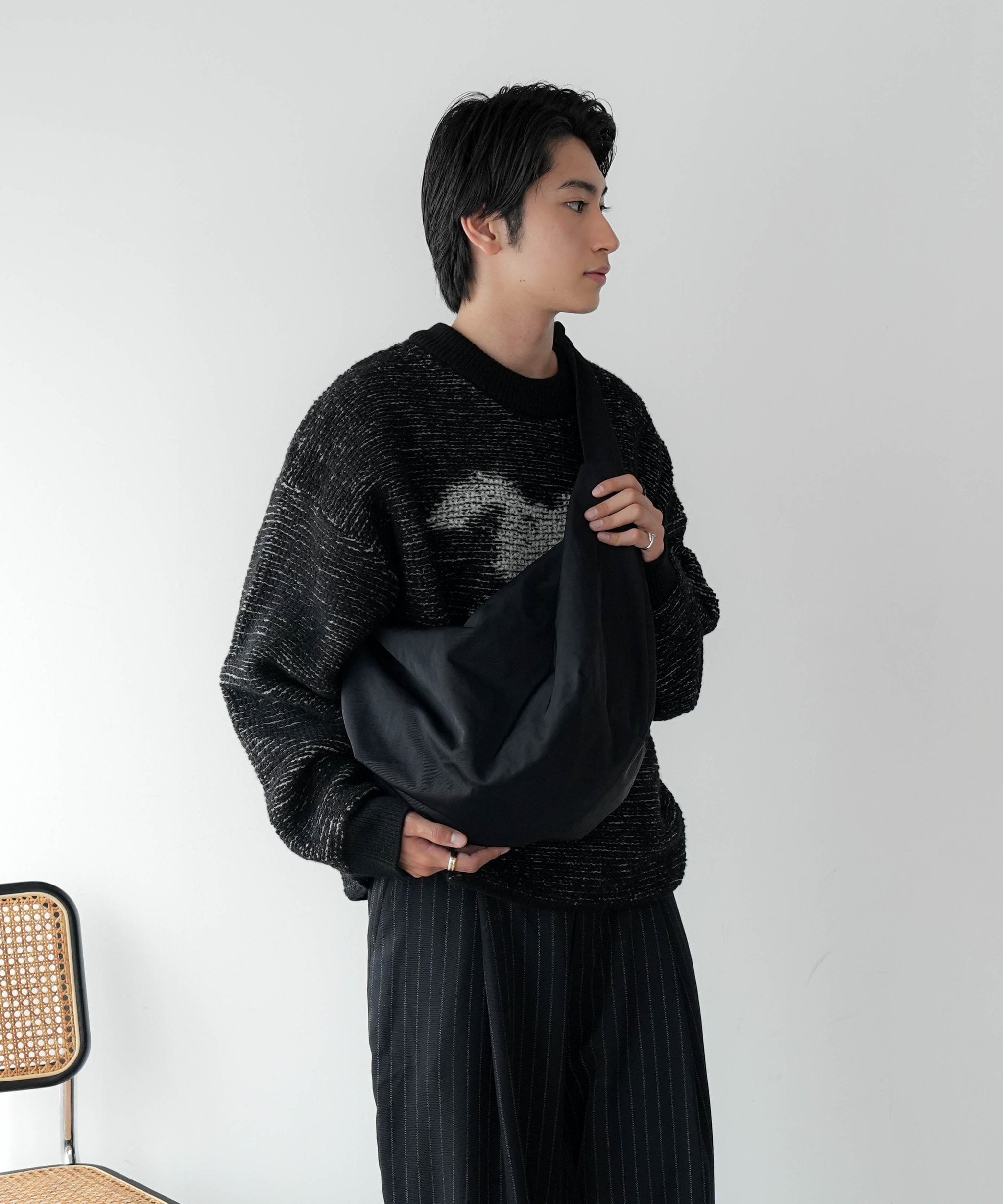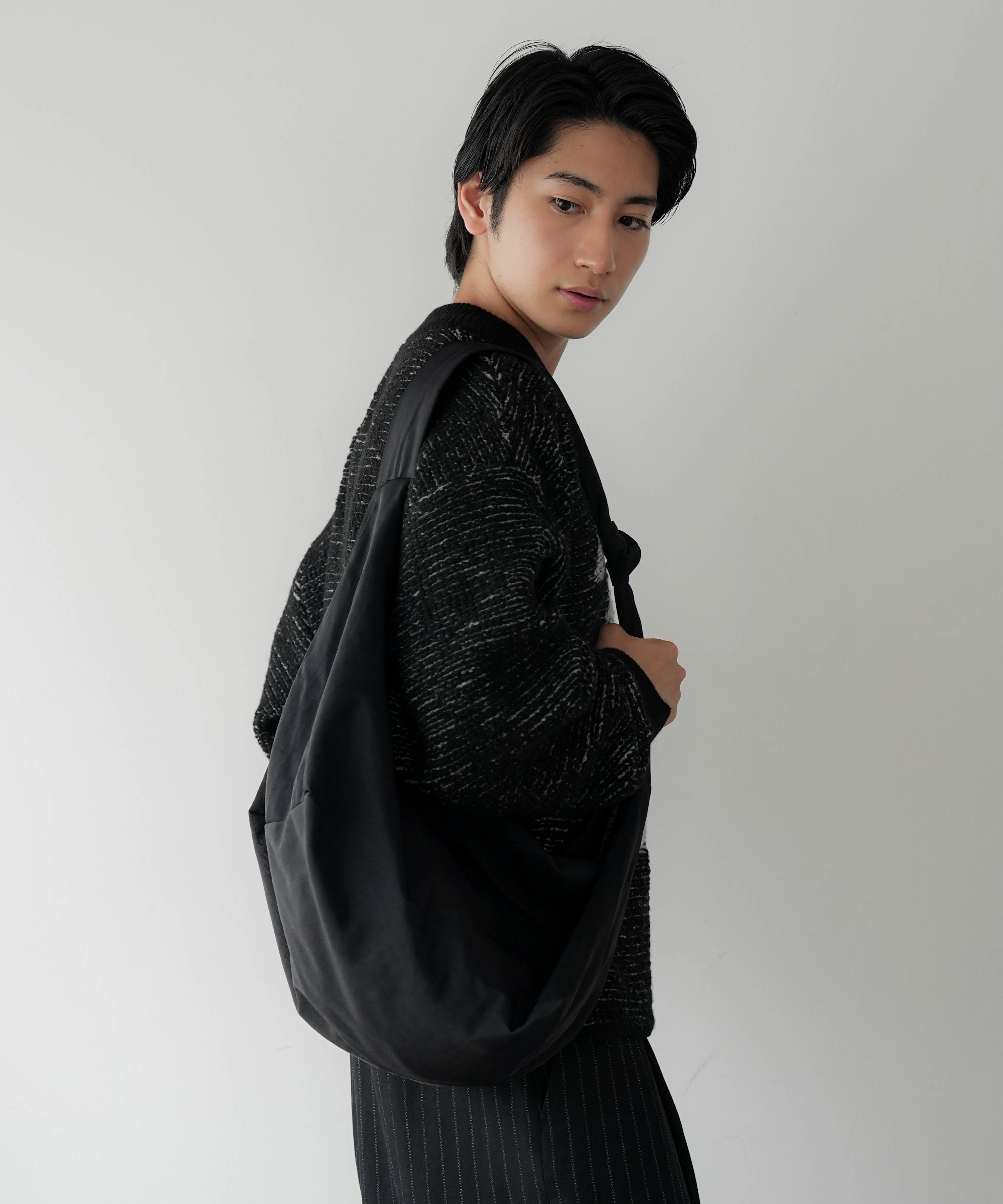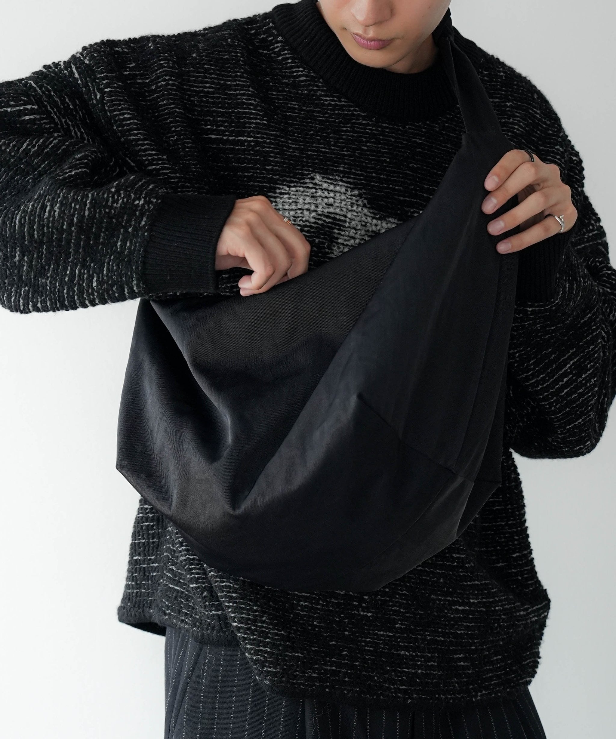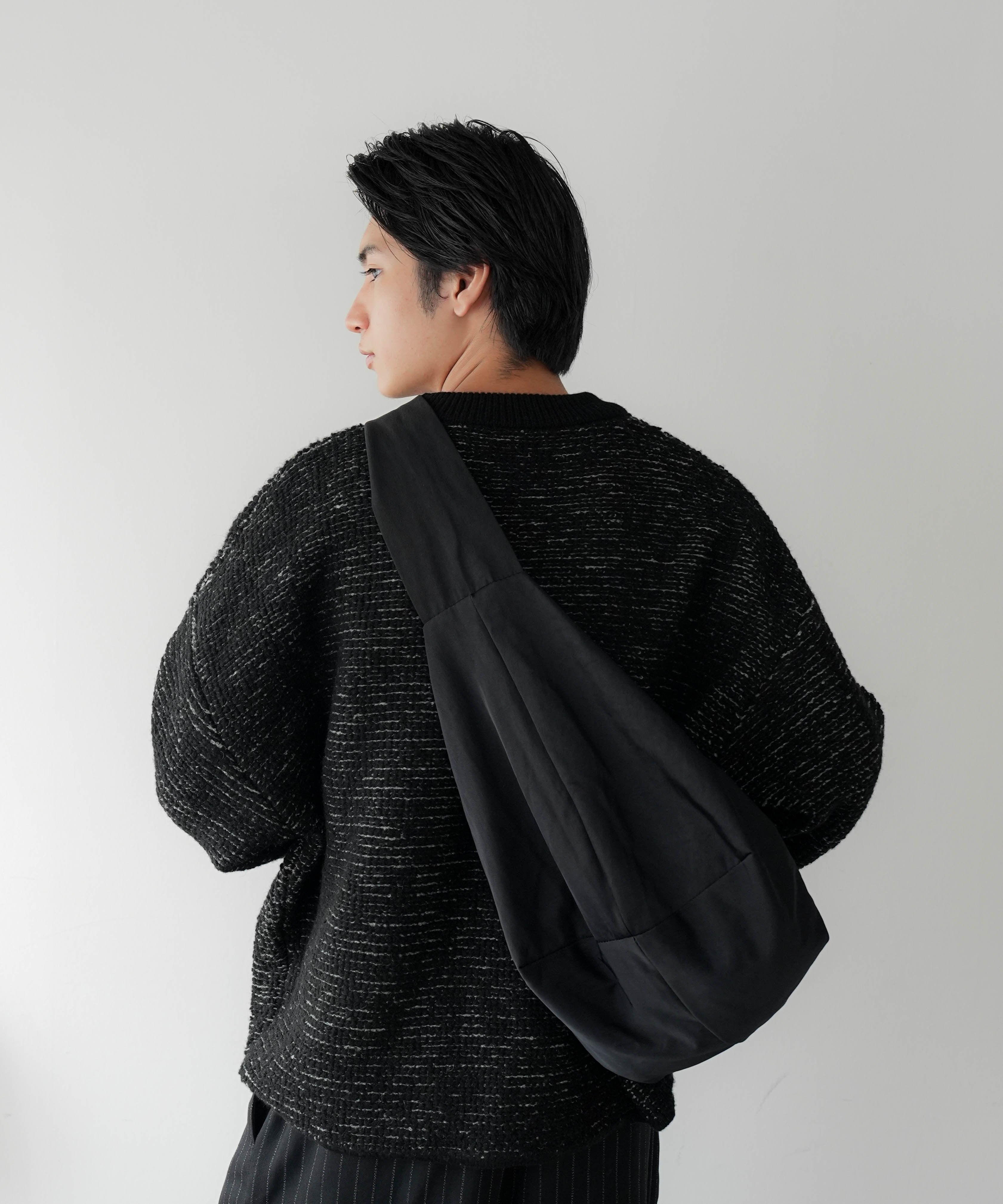 機能的にもこの結び目が肩にフィットしバッグの余計な動きを防ぎます。