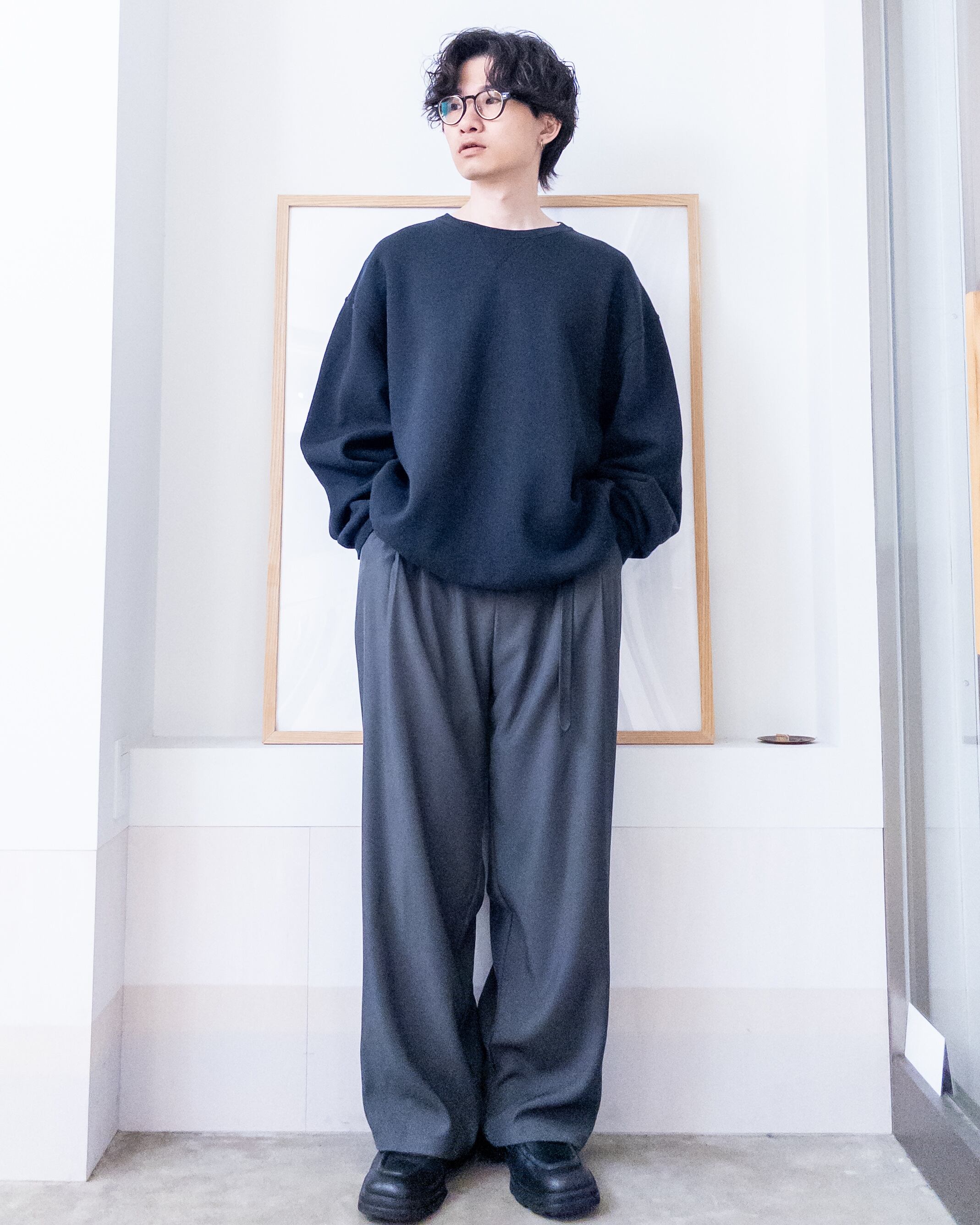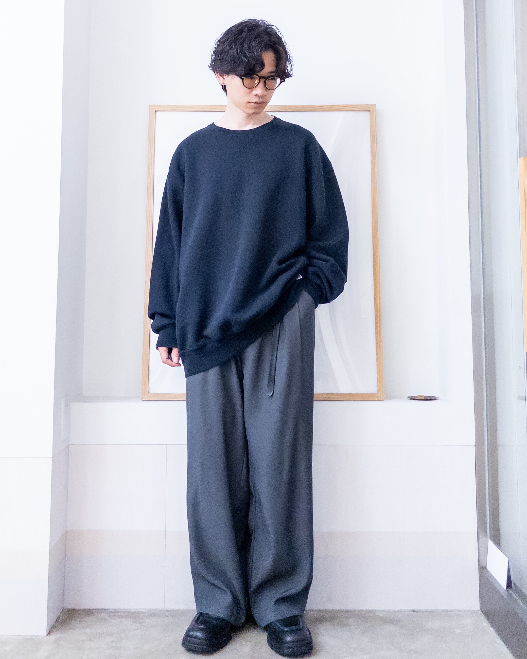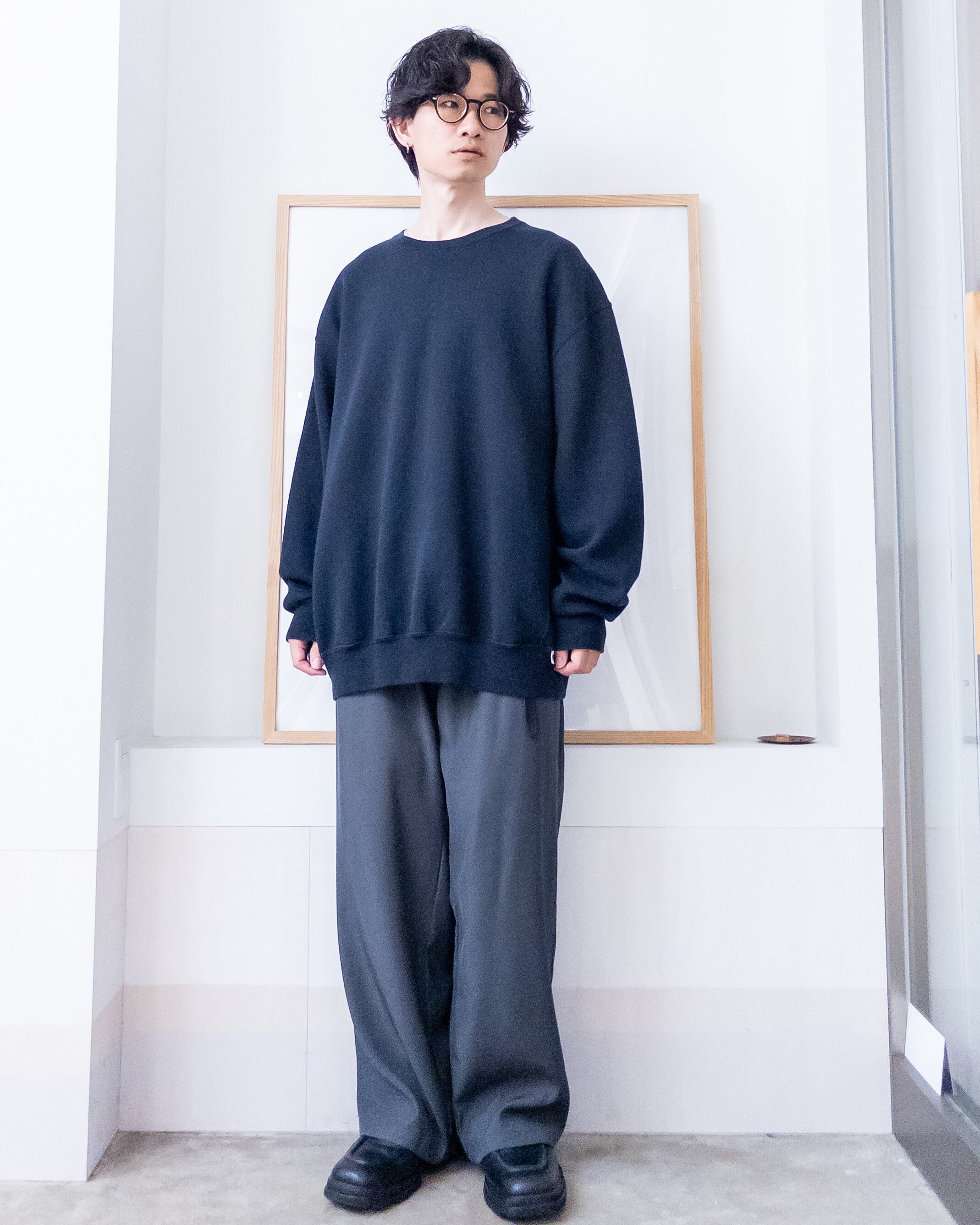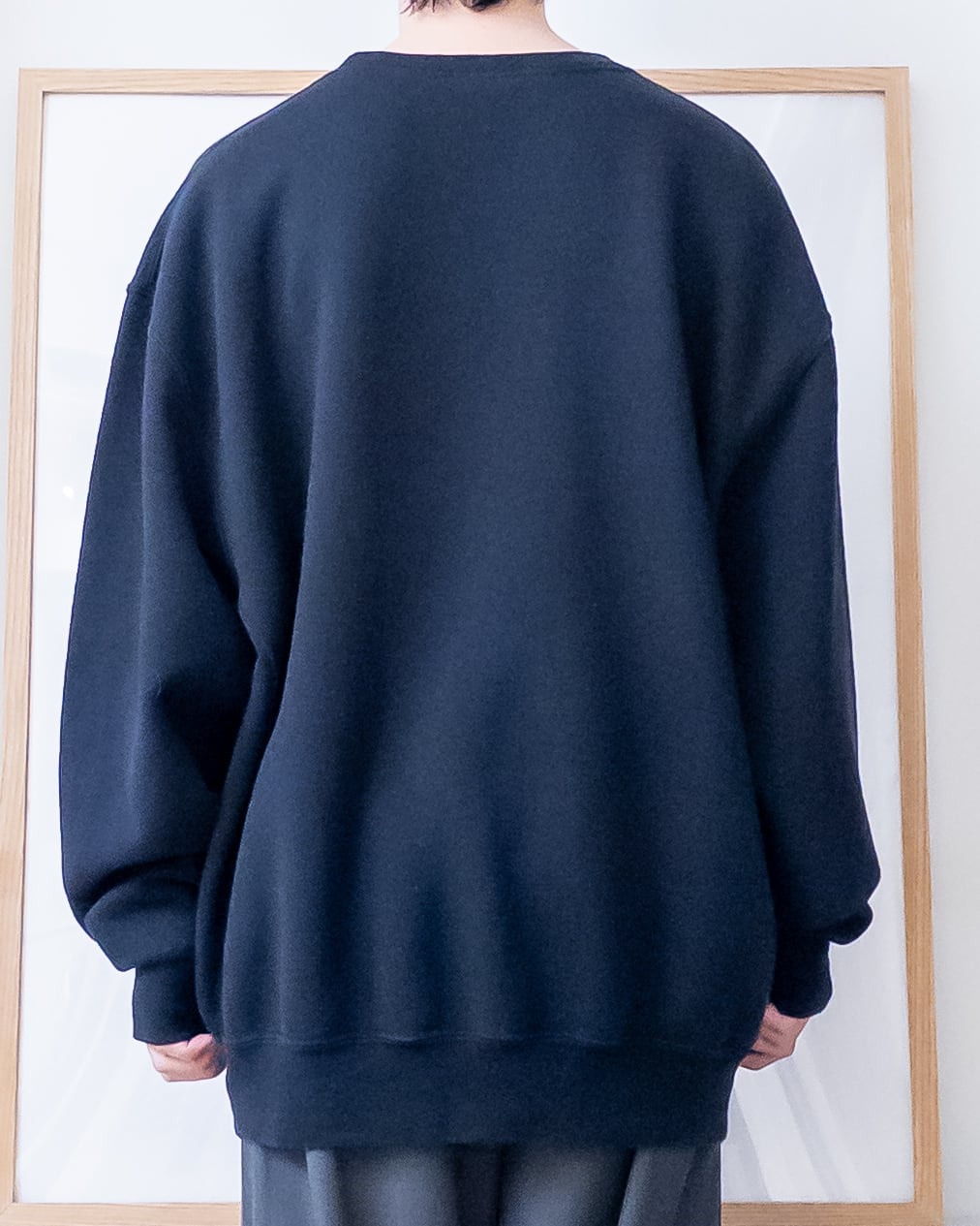 シンプルなデザインのクルーネックスウェット。