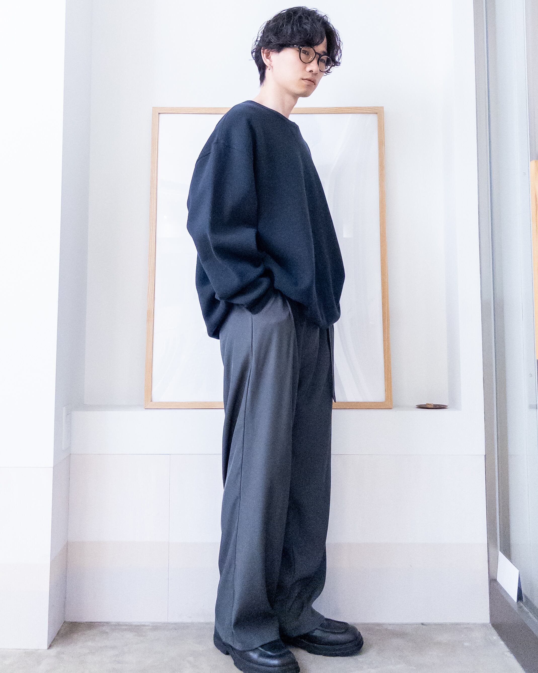 身幅肩幅が広く、着丈は短めの今っぽいシルエットです。