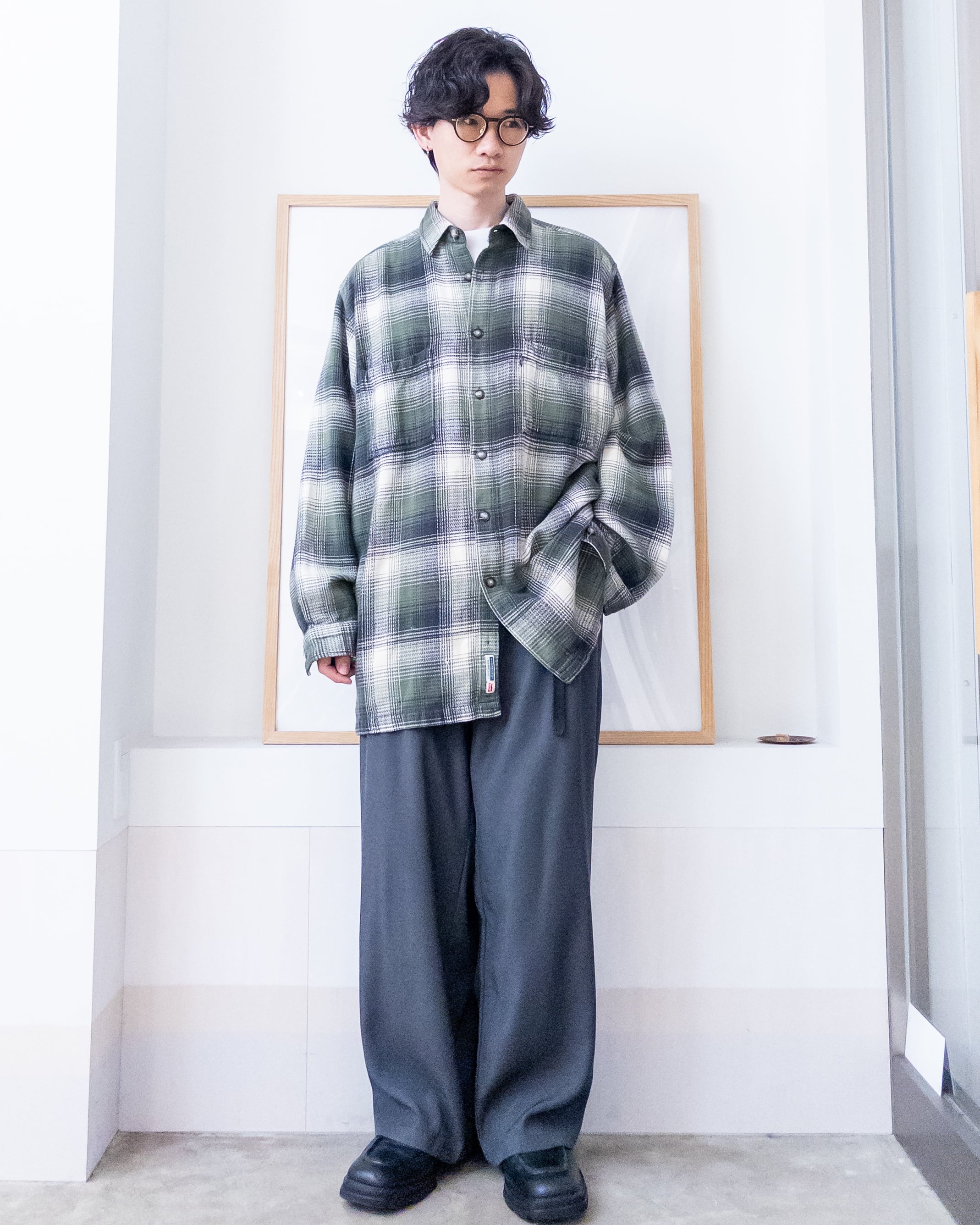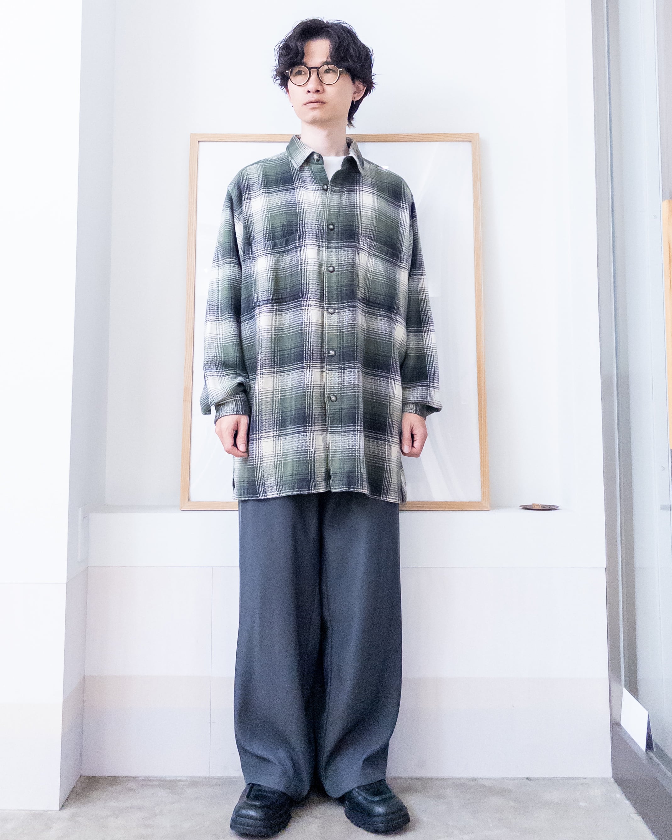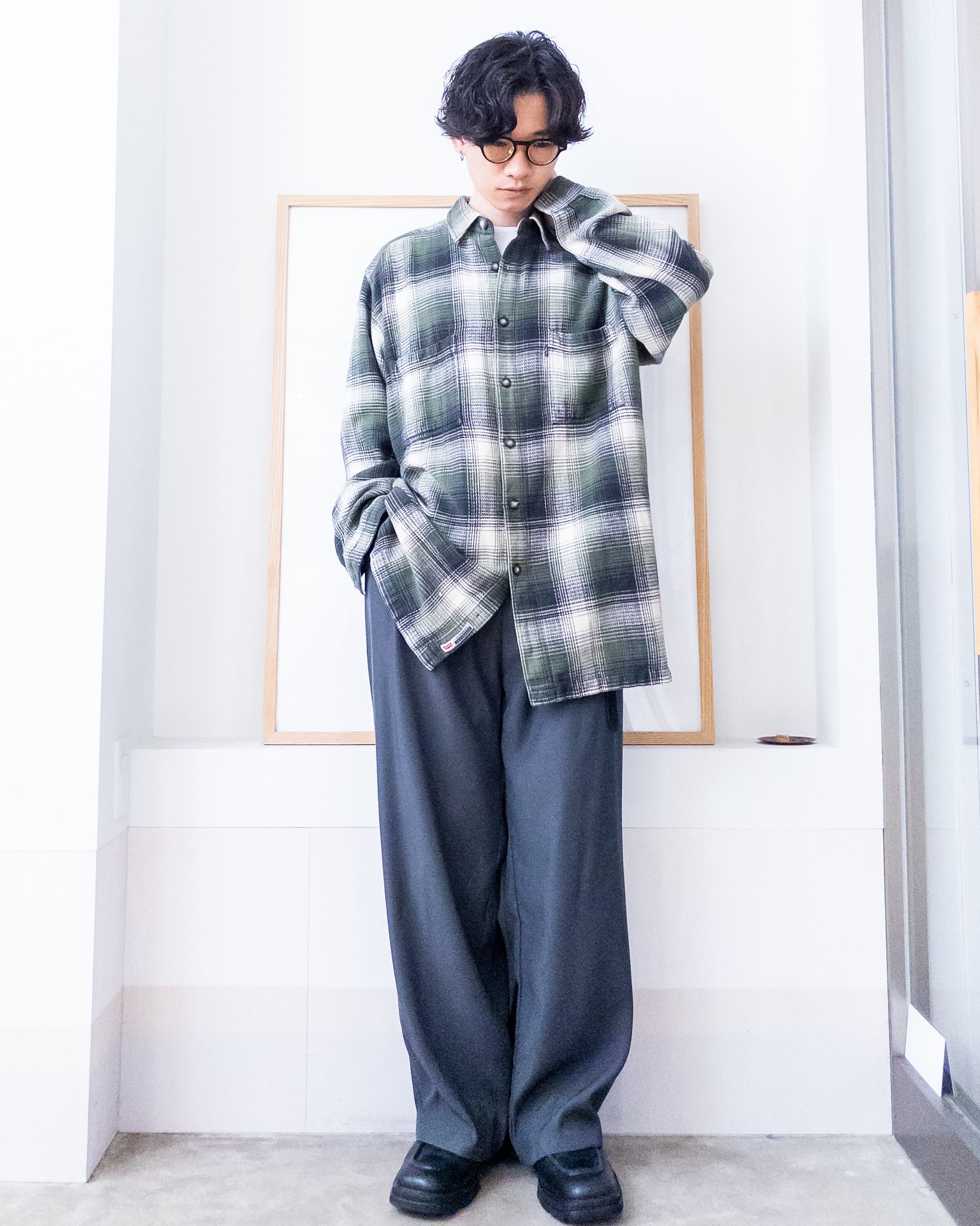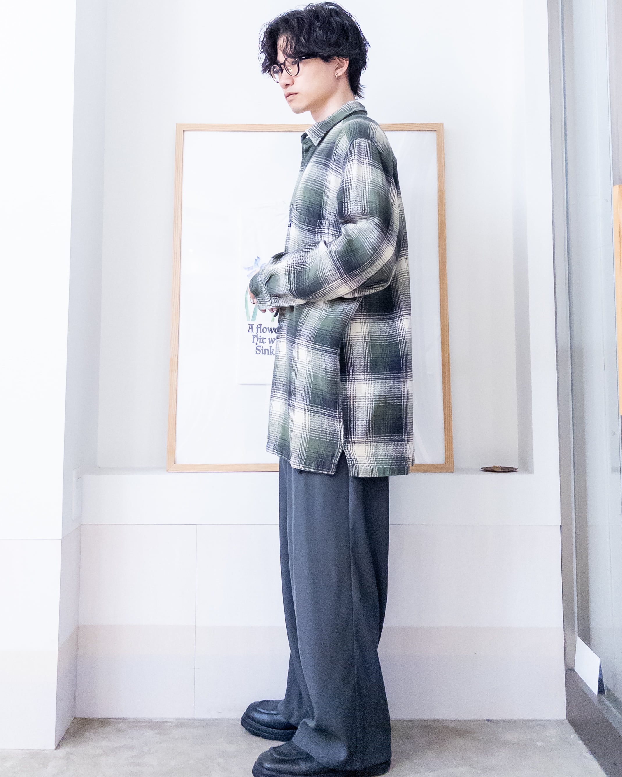 ゆったりとしたサイズ感が今っぽい雰囲気で、体のラインをカバーしてくれるので体系問わず様になります。