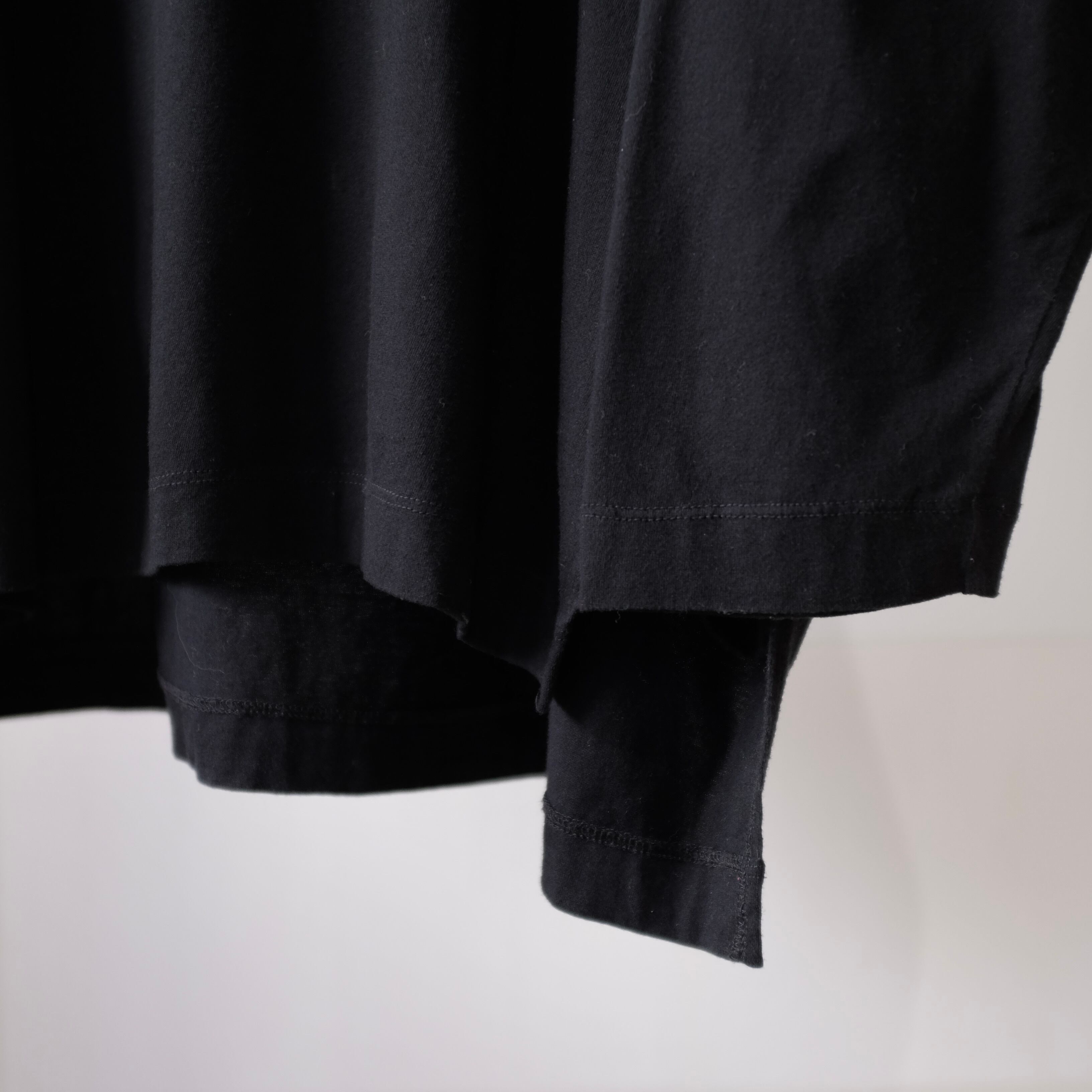 滑らかなツヤのあるコットン生地を使用することでカジュアルすぎない表情に。また、裾にサイドスリットを入れて前後の着丈を変えることで動きのあるシルエットにしました。