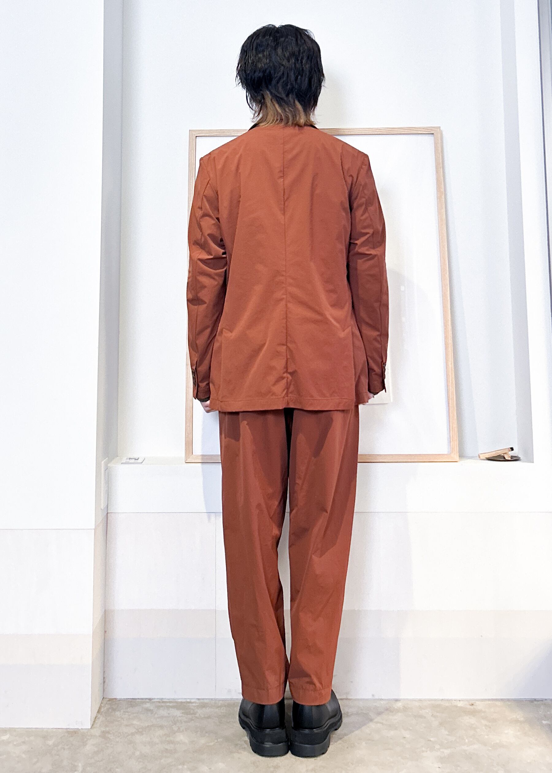 今回セットアップで着用出来るように作りました。シャツにネクタイを締めればビジネススーツとしても使えます。もちろんジャケット単体、スラックス単体としても十分活用できるほどそれぞれデザインは凝ったものにしています。