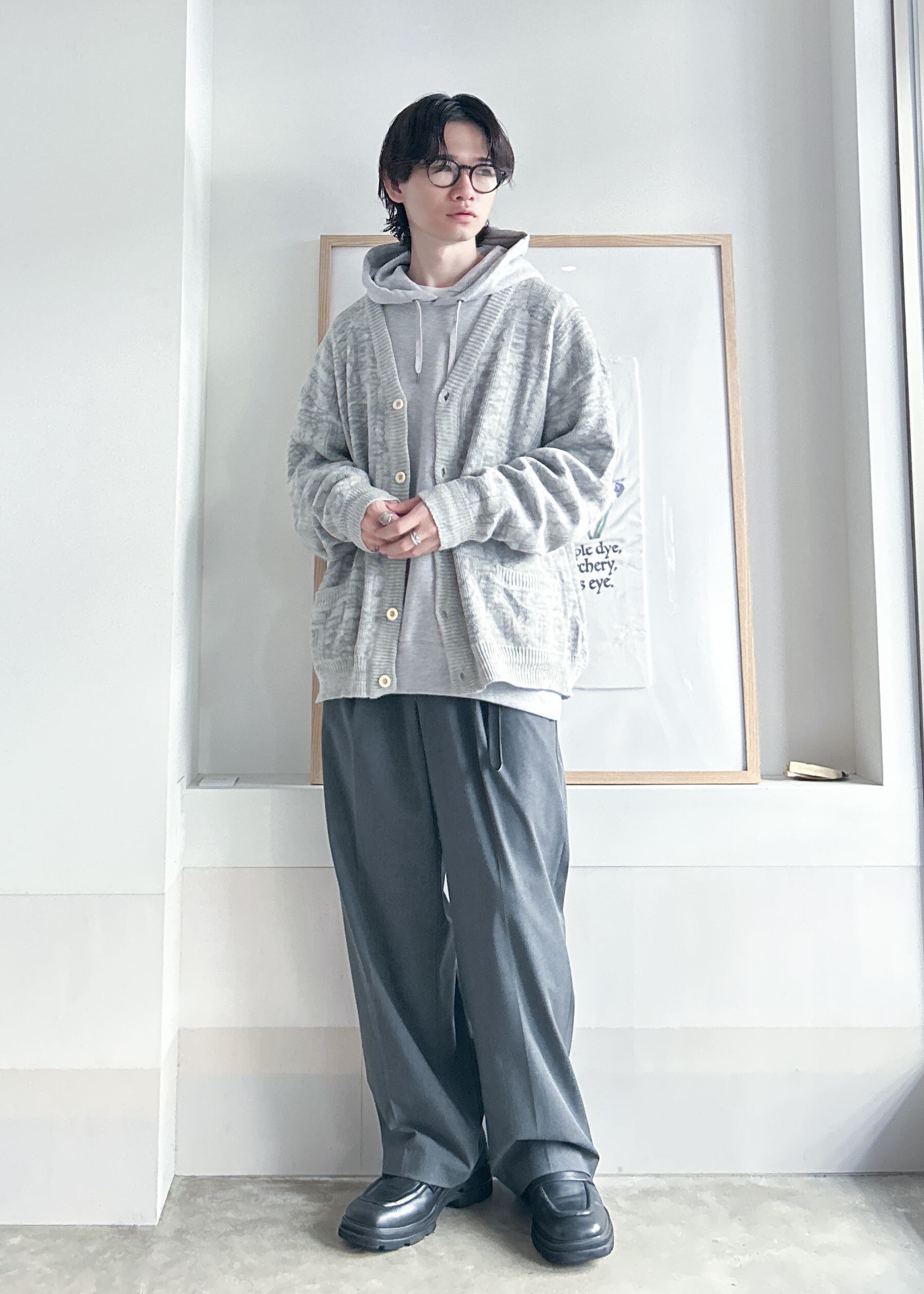 シンプルなトップスに羽織るだけ装飾性を取り入れられるアイテムです。全体をグレーで統一して大人っぽさを担保しつつ、装飾性をしっかり取り入れています。着こなしのメインアイテムとしてはもちろん、インナー使いでアクセントにするのもいいでしょう。