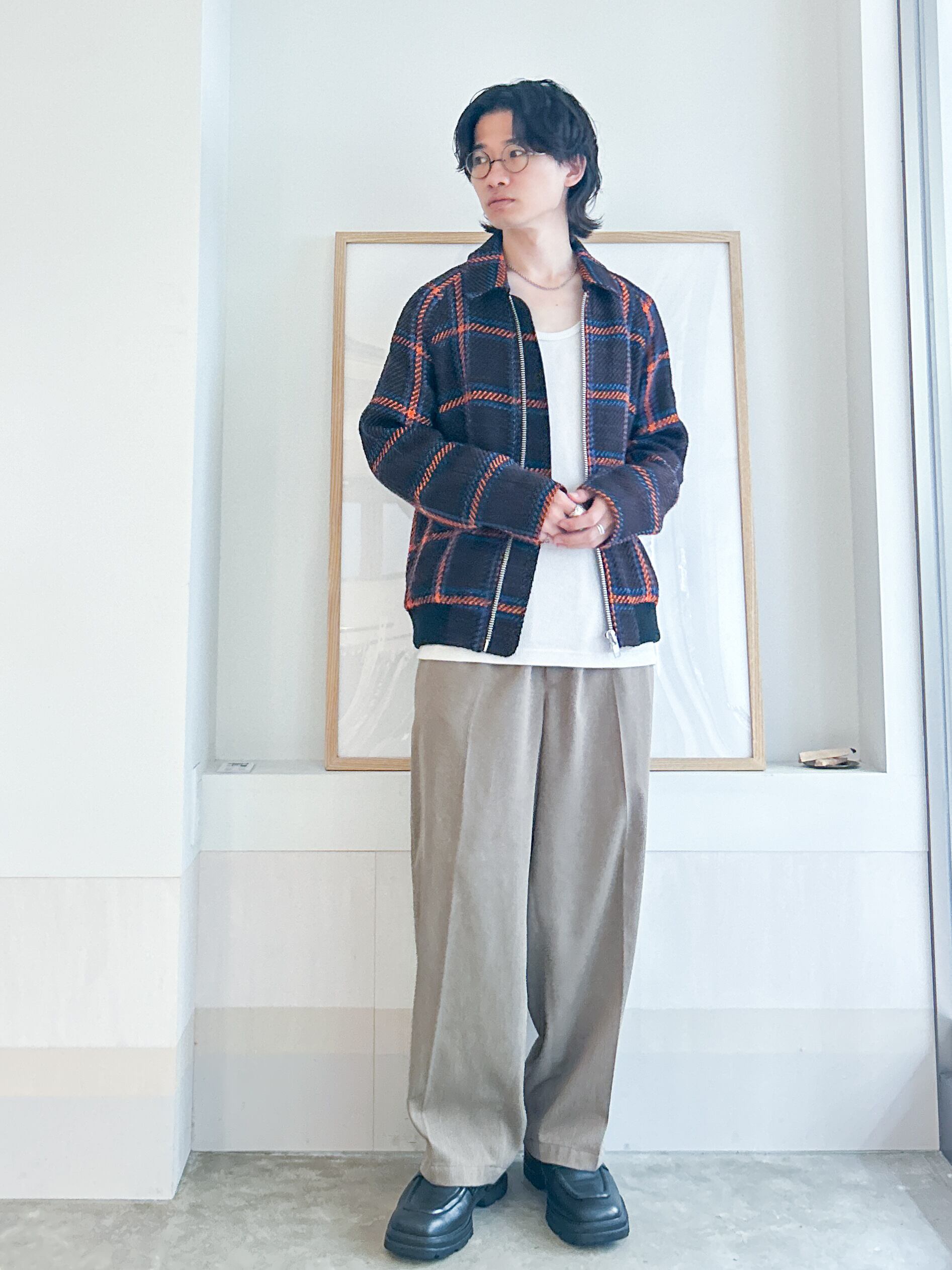 大柄なチェックが目を引くブルゾン。ざっくりした素材感や柄で温かみのある印象がありつつ、落ち着いた配色と高級感のある素材で子供っぽくなりません。しっかりと短めの丈感でトレンド感もあります。肉厚な生地に裏地も付いて防寒性もあるので秋冬に活躍すること間違いなしです。シンプルなジャケット・アウターしか持っていないという方はこのくらいの着こなしやすいデザインからチャレンジするのがオススメです。