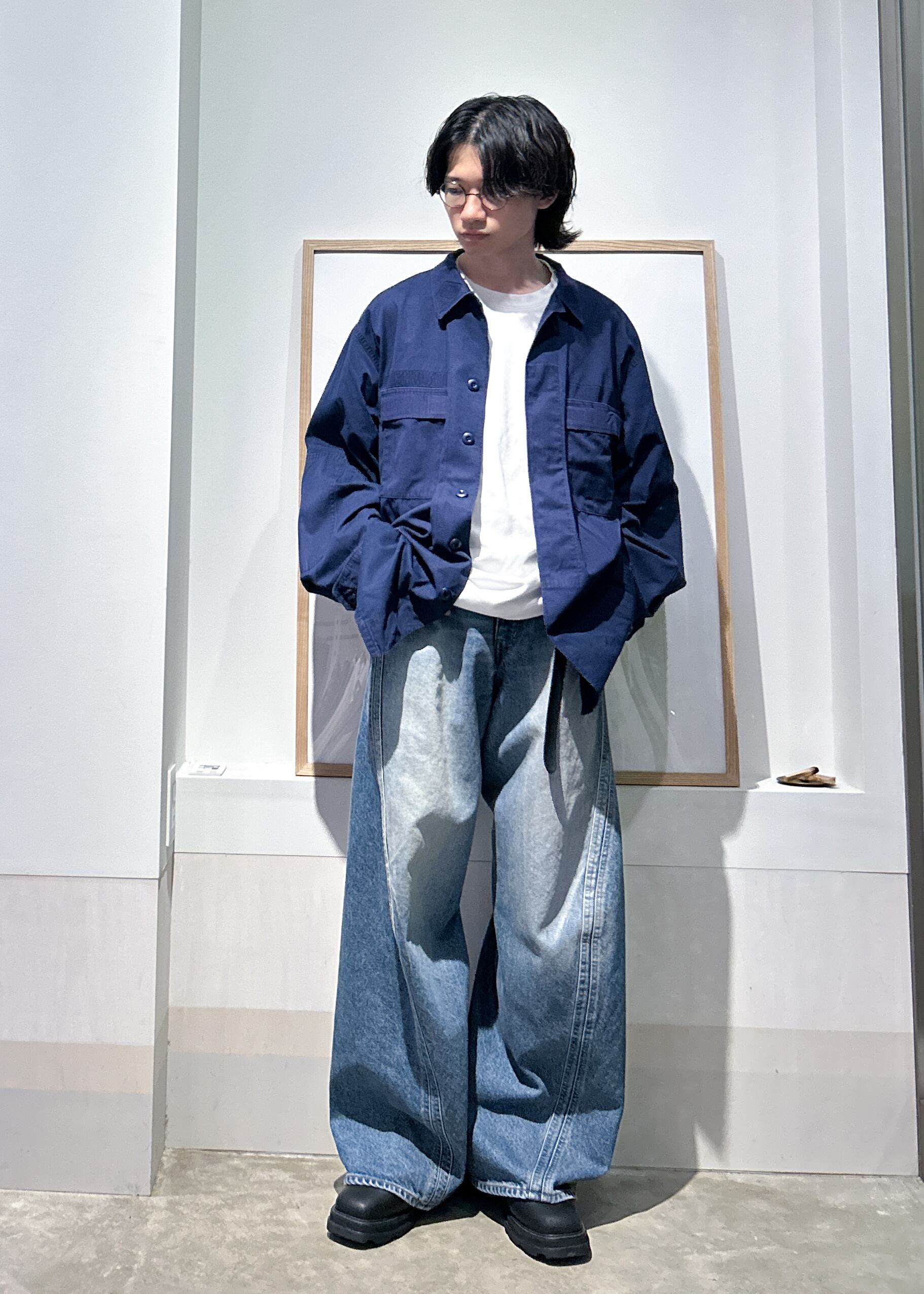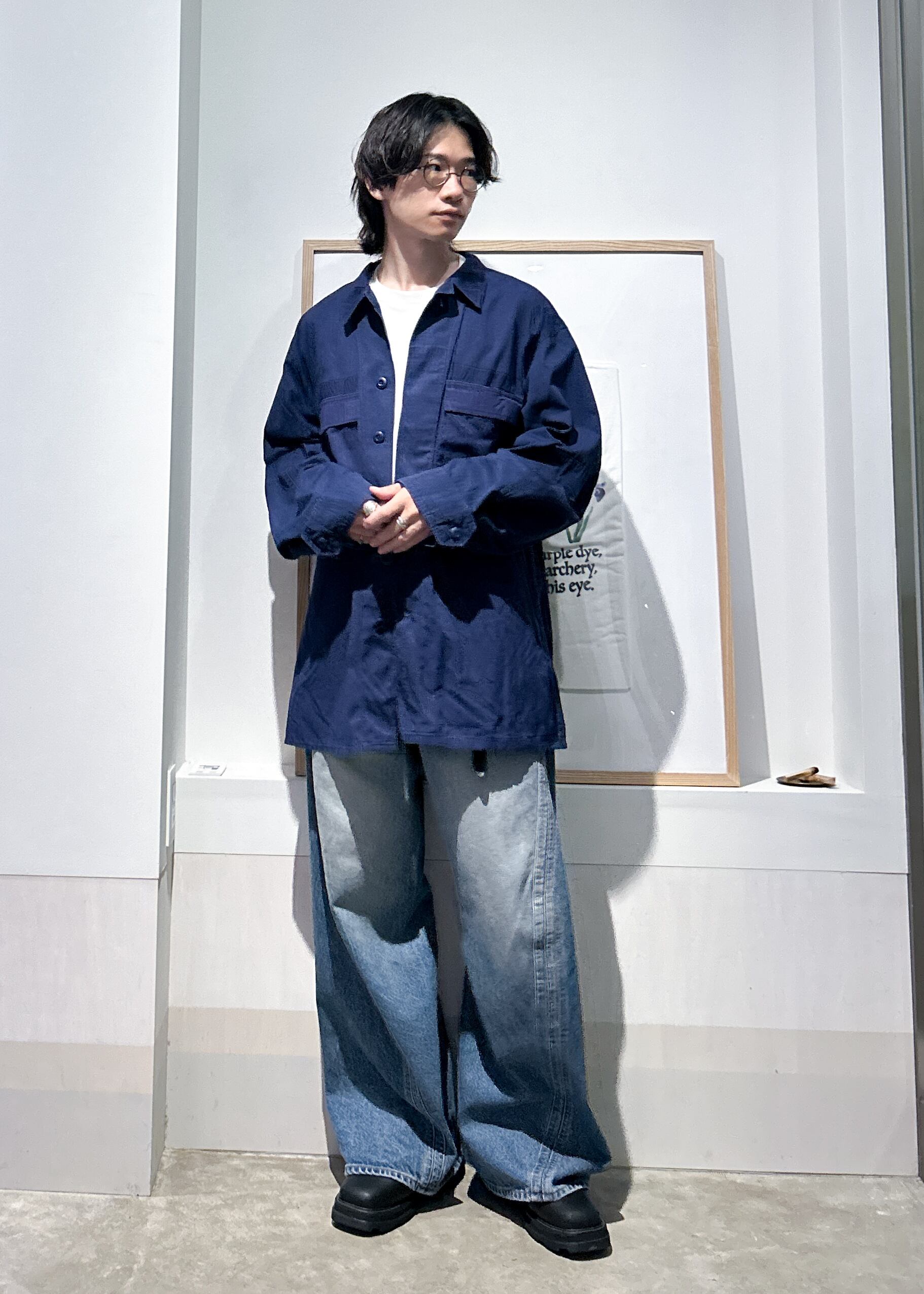 がっしりとした素材のミリタリージャケット。ミリタリーらしい無骨なデザインのおかげで装飾性があります。全体がネイビーで統一されていたり、目の詰まった綺麗な生地感で大人っぽい雰囲気もあります。ややワイドなシルエットで着こなしも簡単に今っぽくしてくれます。