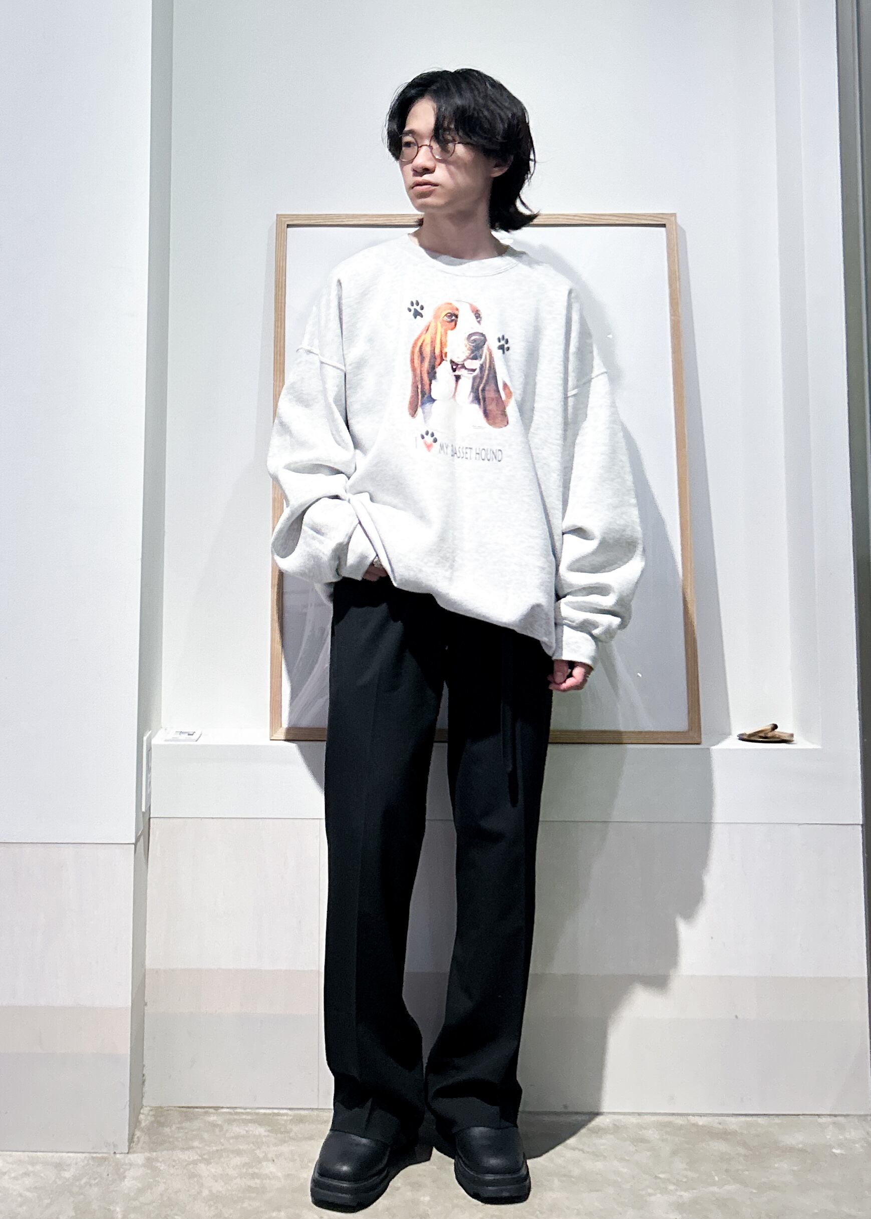 シンプルなデザインのスウェット。ゆったりしたサイズ感ですが着丈は長すぎないのでルーズな印象にならず着こなしやすいでしょう。プリントが入っていますが、色数も少なく小さい面積なのでカジュアルすぎません。薄手の裏起毛生地でロングシーズン着用できます。