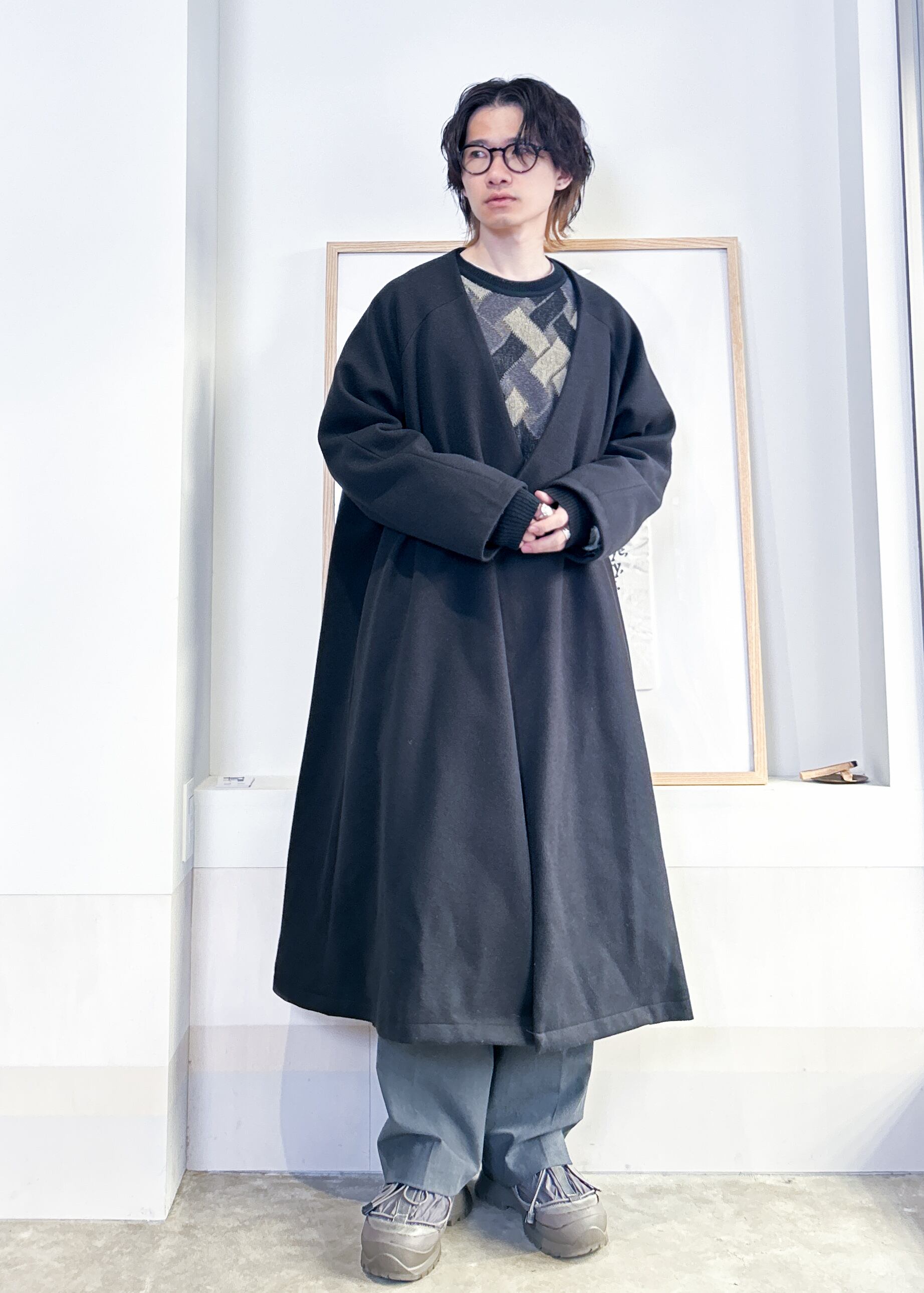 シンプルなノーカラーコートですが、パターンに凄くこだわりました。その結果シンプルだけど存在感があるコートに。