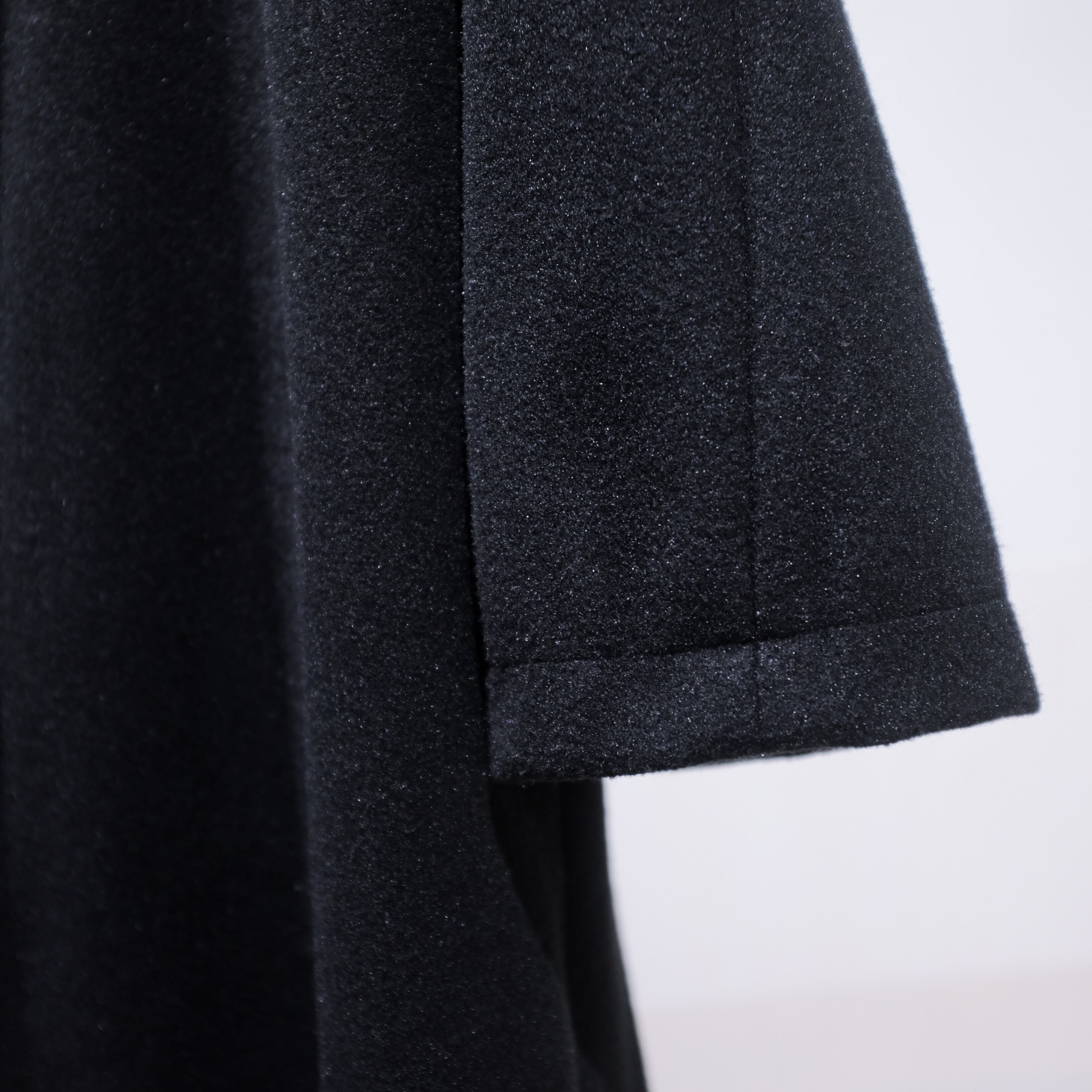 裾に向けて大きく広がったマントのような形はAラインとなって完璧に体型を隠してくれます。男性だけでなく女性もオーバーコートとして使用できるので、体型や性別に関係なく着用できるのもポイント。