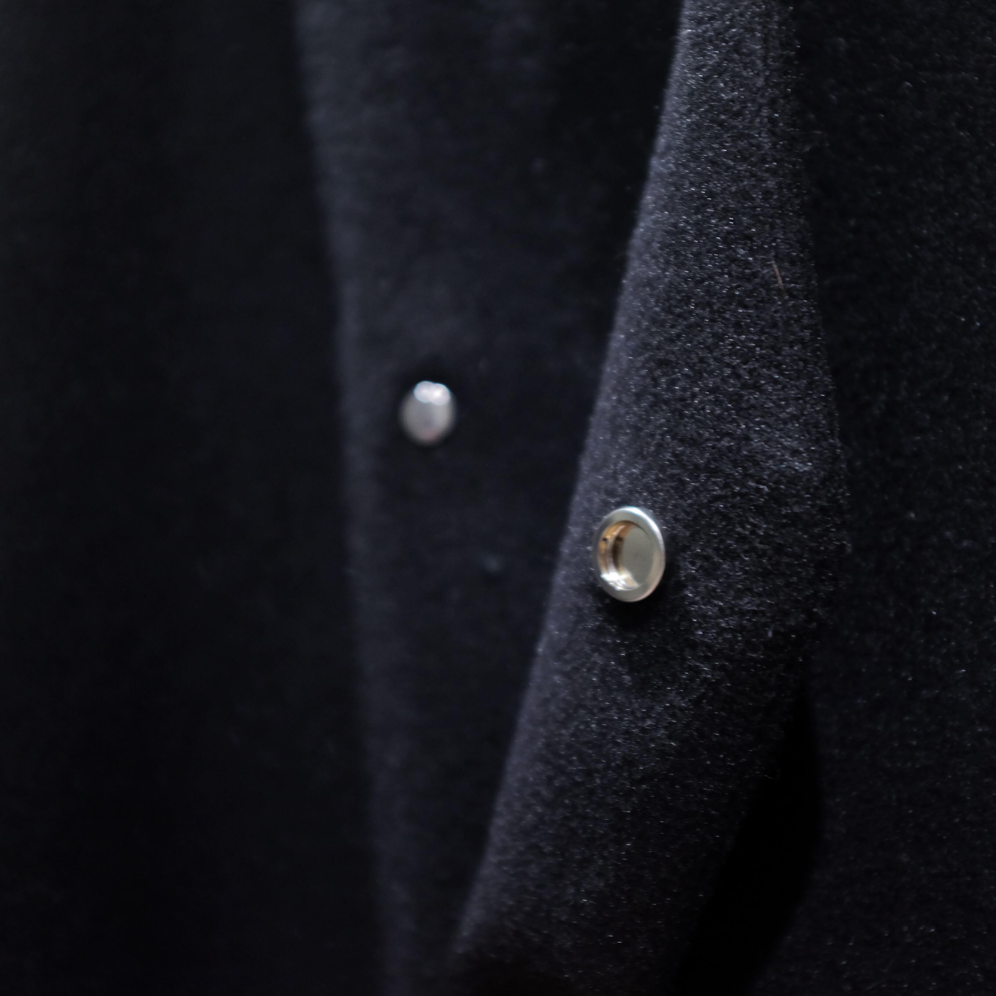 他にも袖はラグランにしてあったり、綺麗な光沢感のある素材の艶を更に引き立てるために布量を増やしてたるむように製作していたり、前合わせをダブルにすることでして身幅を広くして美しい風合いがでるようにしたりと細かい部分までこだわりました。