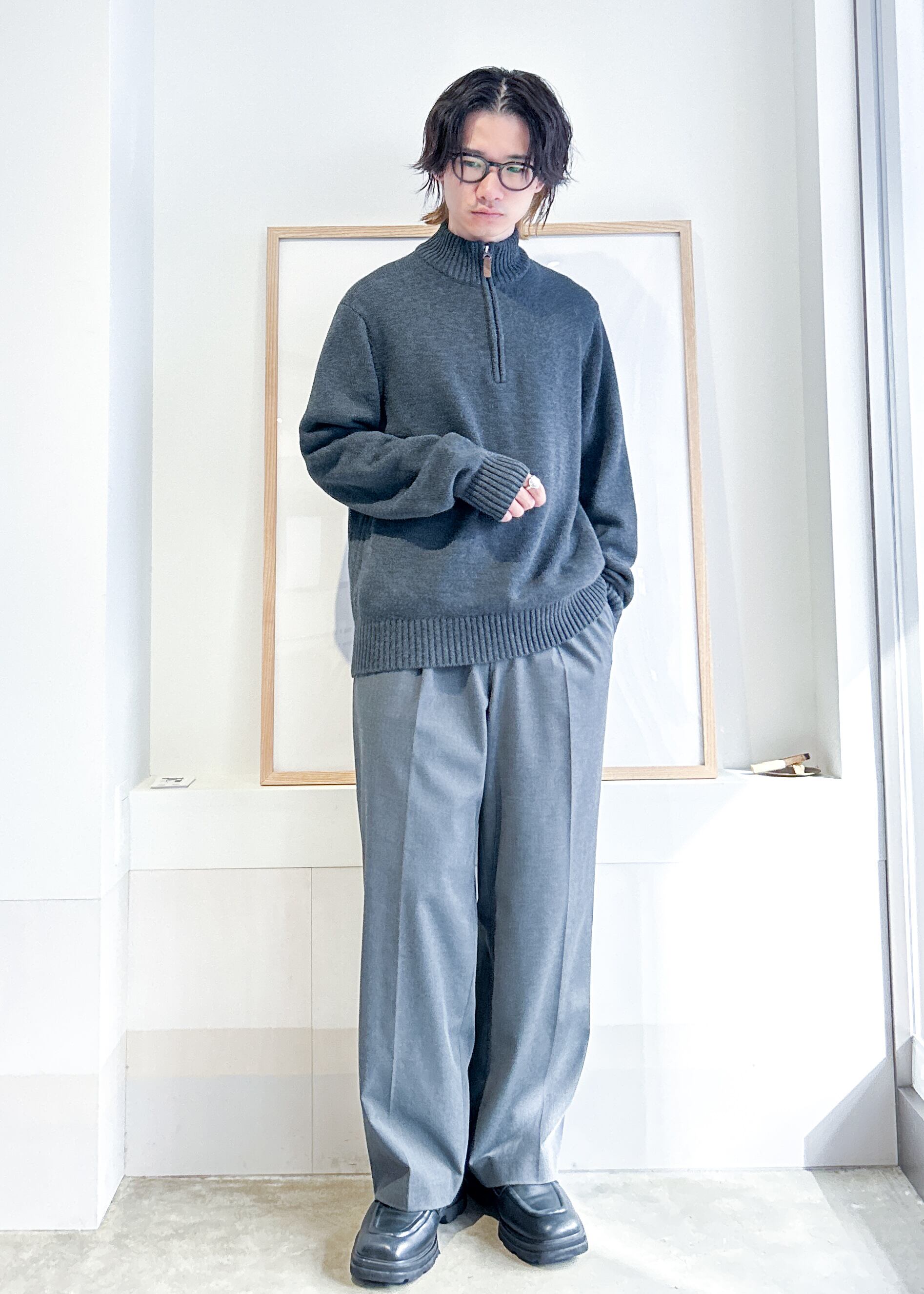 顔周りにあるZIPがアクセサリー代わりに機能してくれるハーフジップニット。