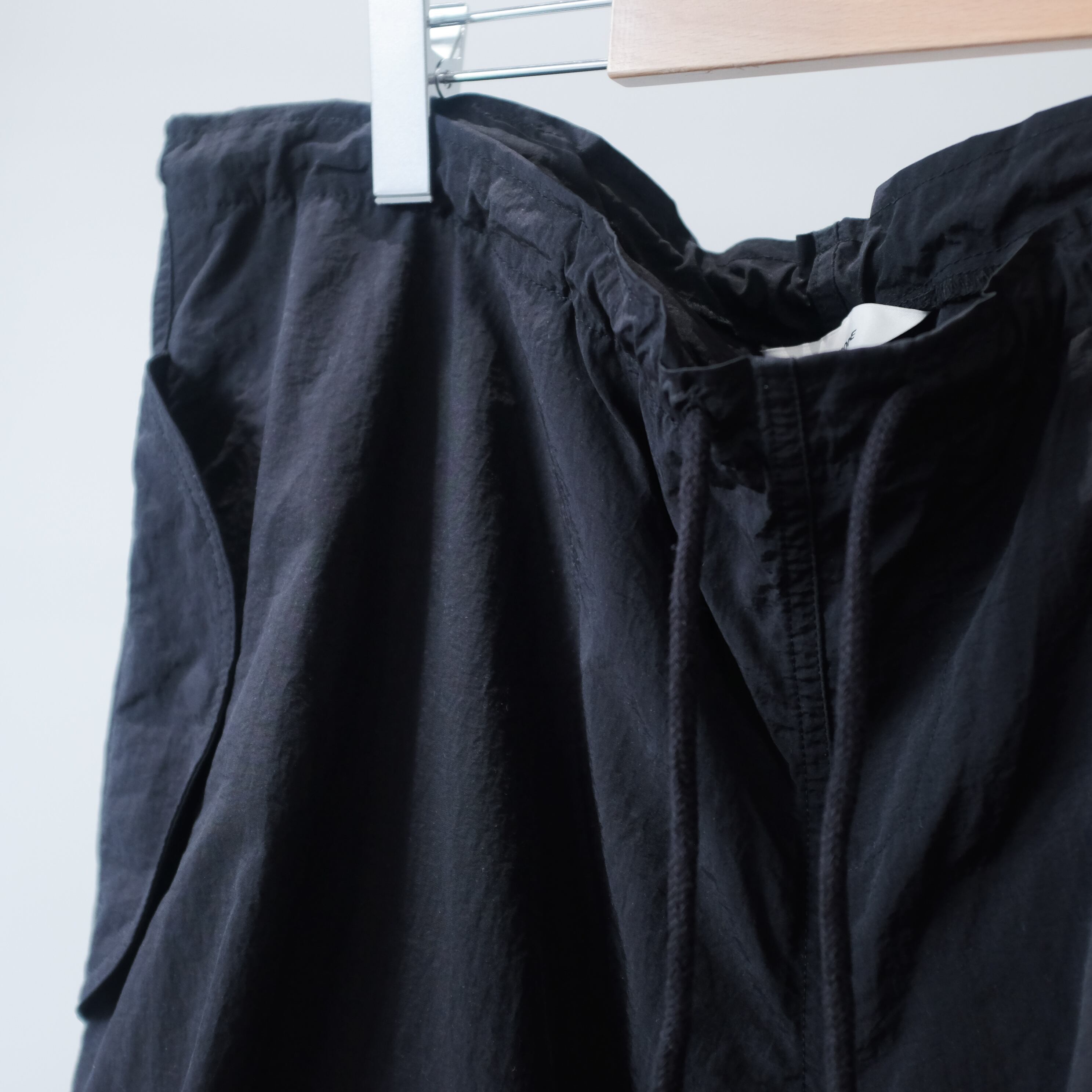 防寒着の上からレイヤードするための極太シルエットやイージーウエスト、動きやすさを確保するためのアクションプリーツや裾のドローコードなど、ならではの魅力が詰まったアイテムです。
