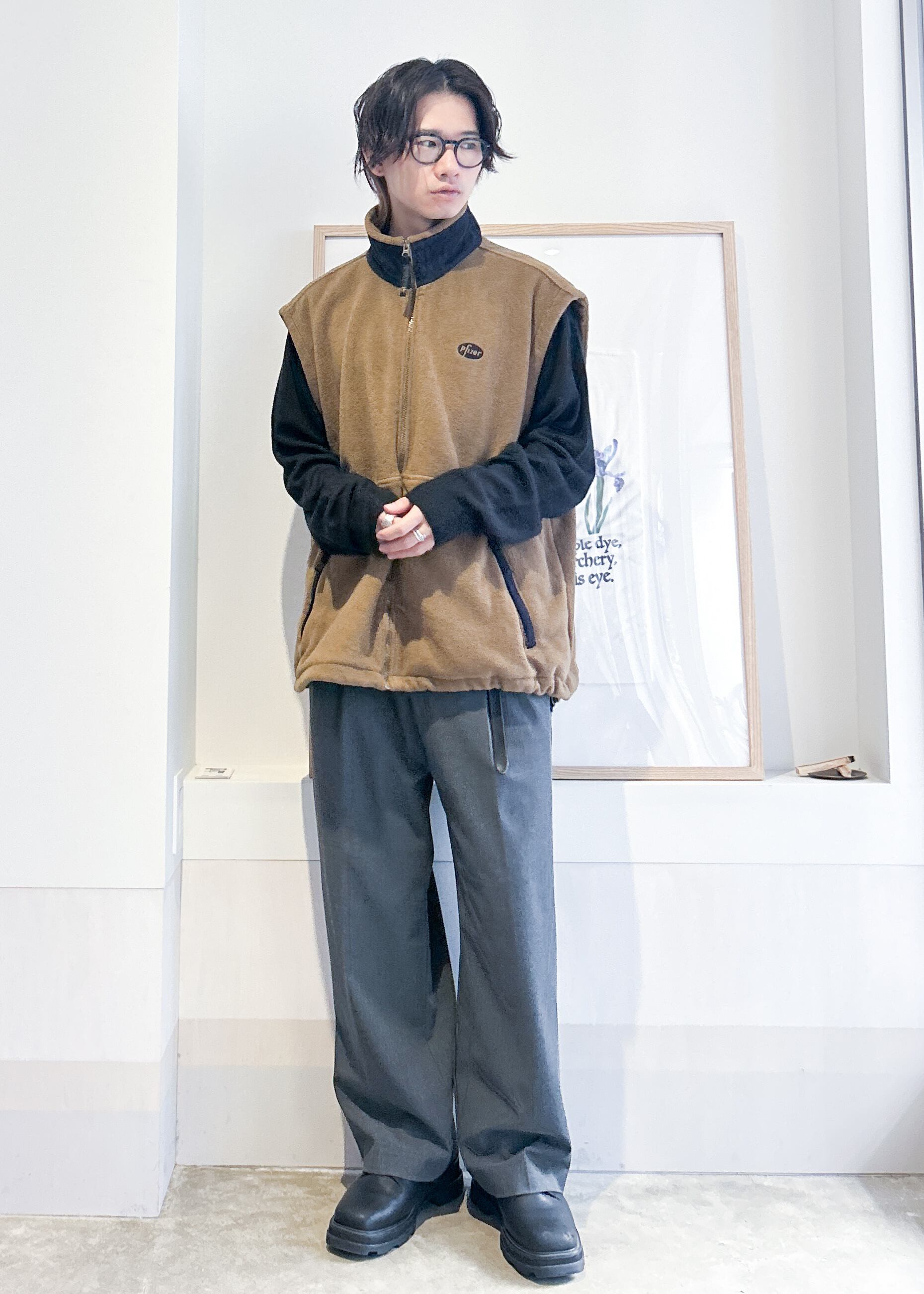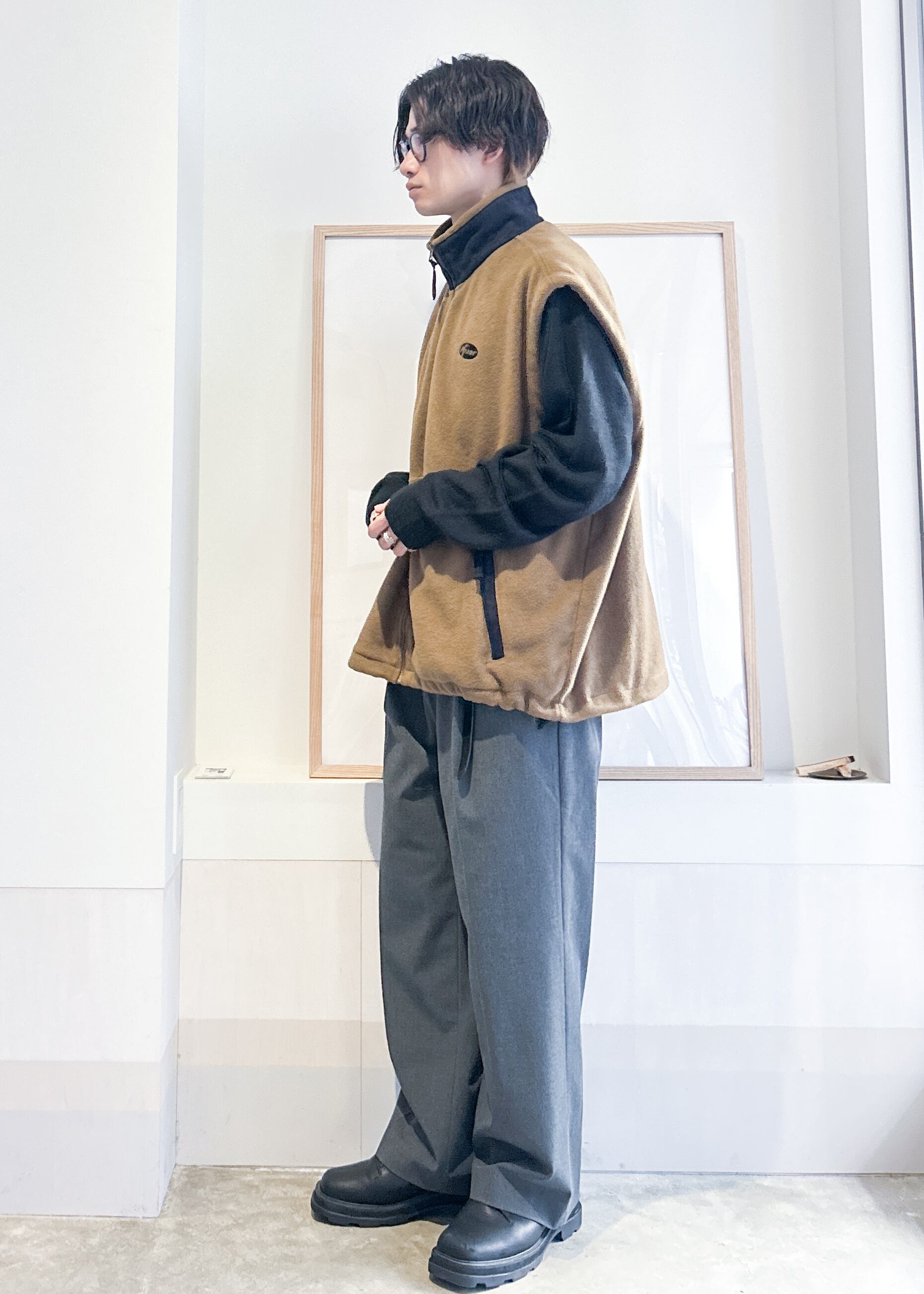 スタンドカラーボアフリースベスト