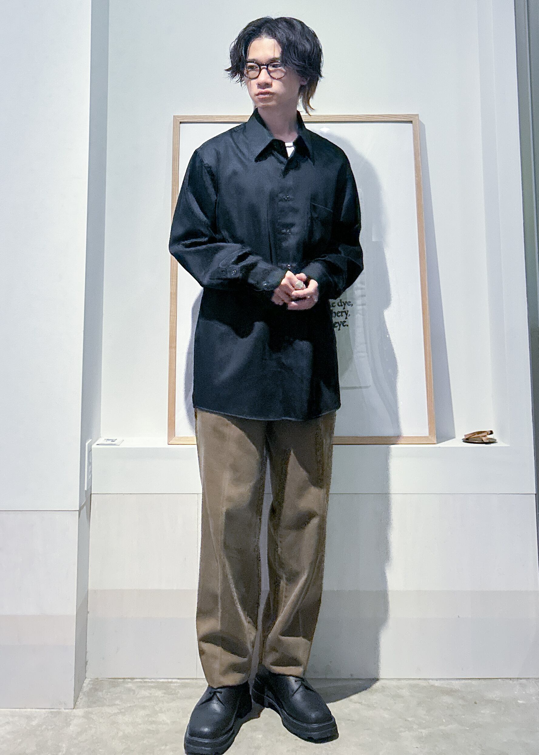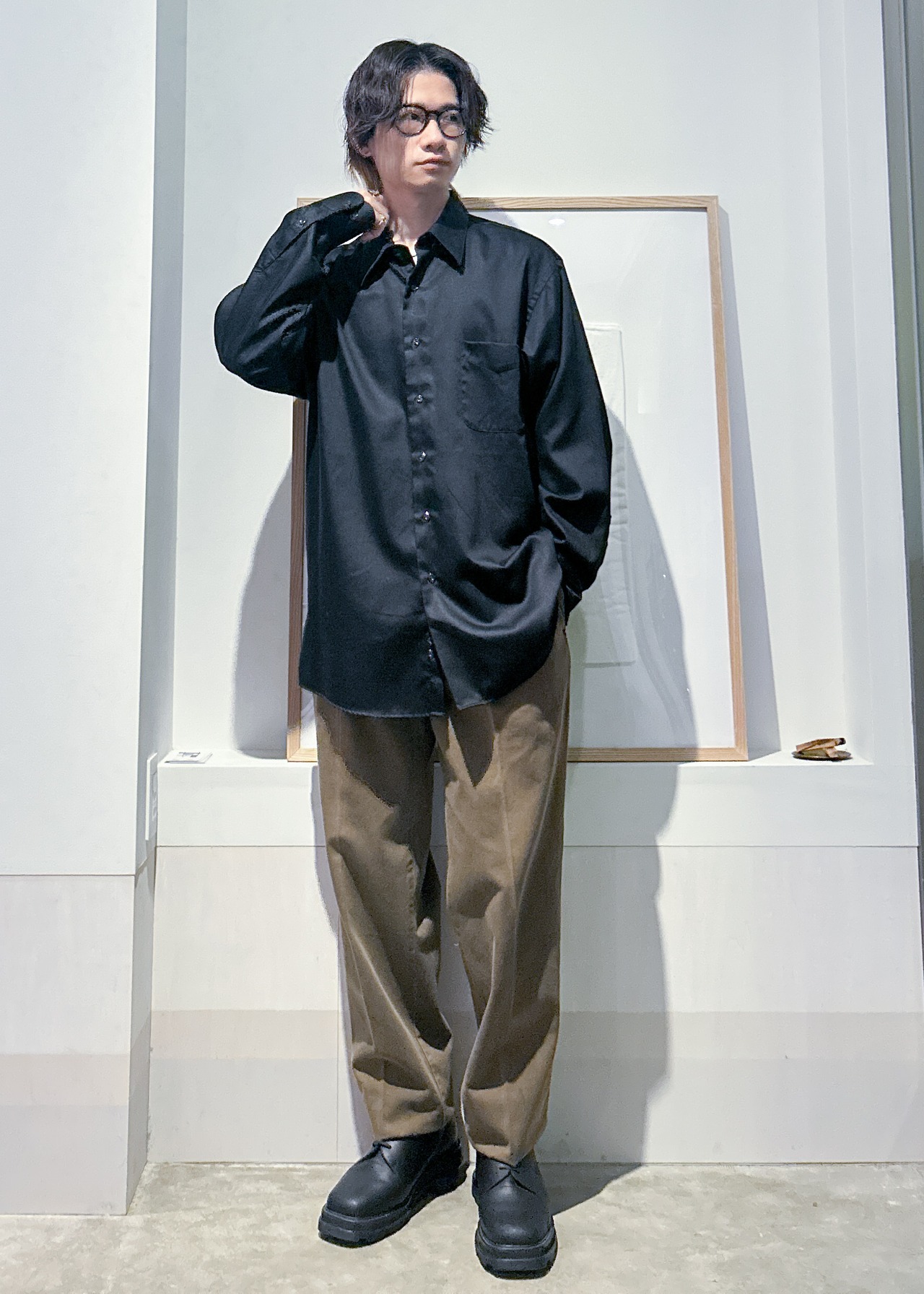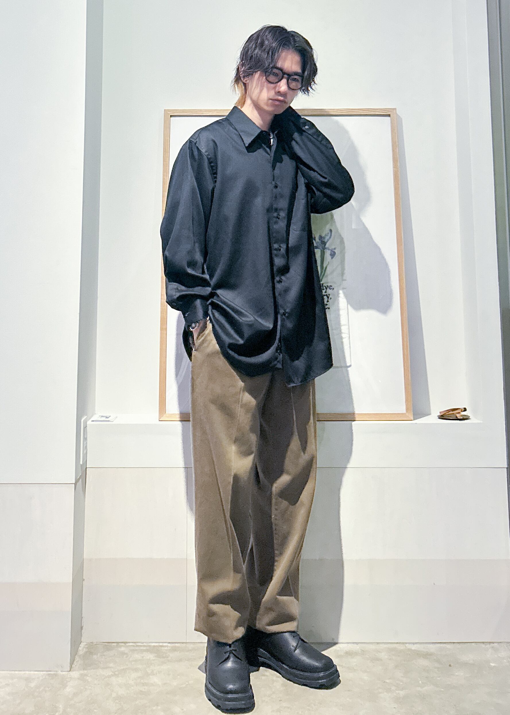 ほどよくゆとりのある腰回りから裾に向かってテーパードしたシルエットは脚のラインを綺麗に見せてくれます。
